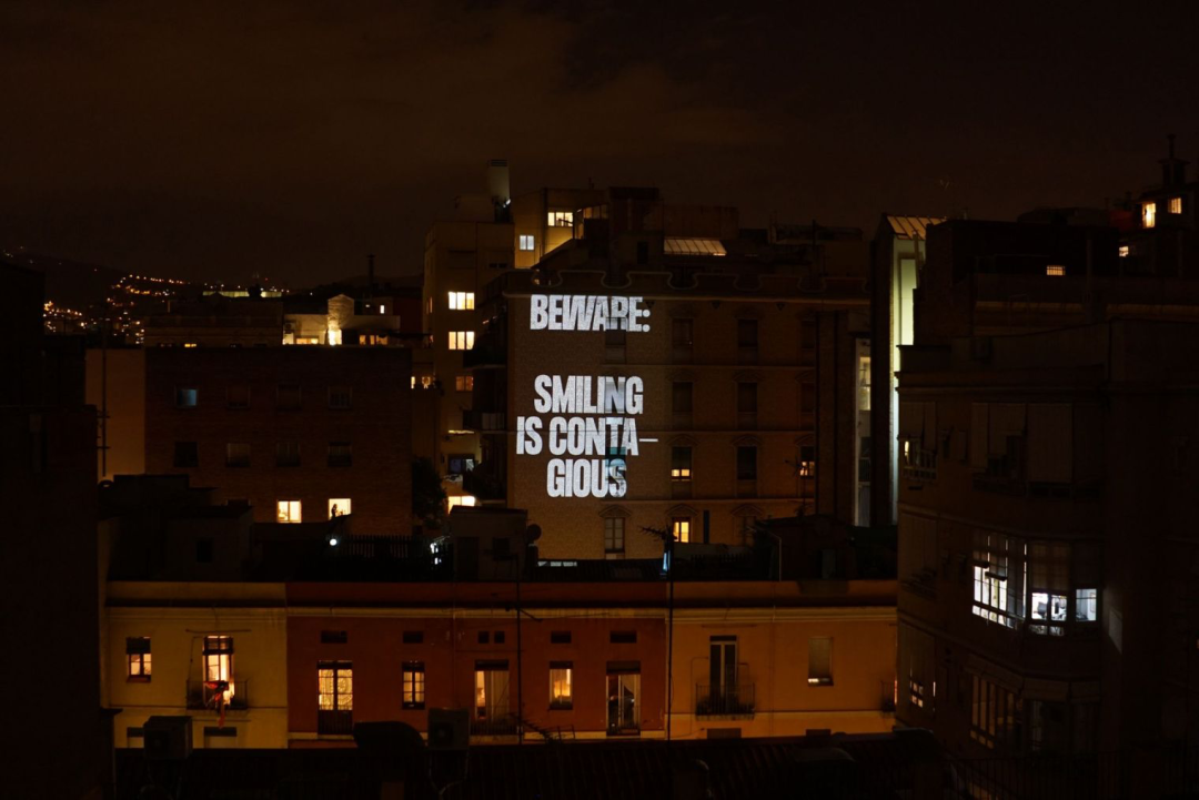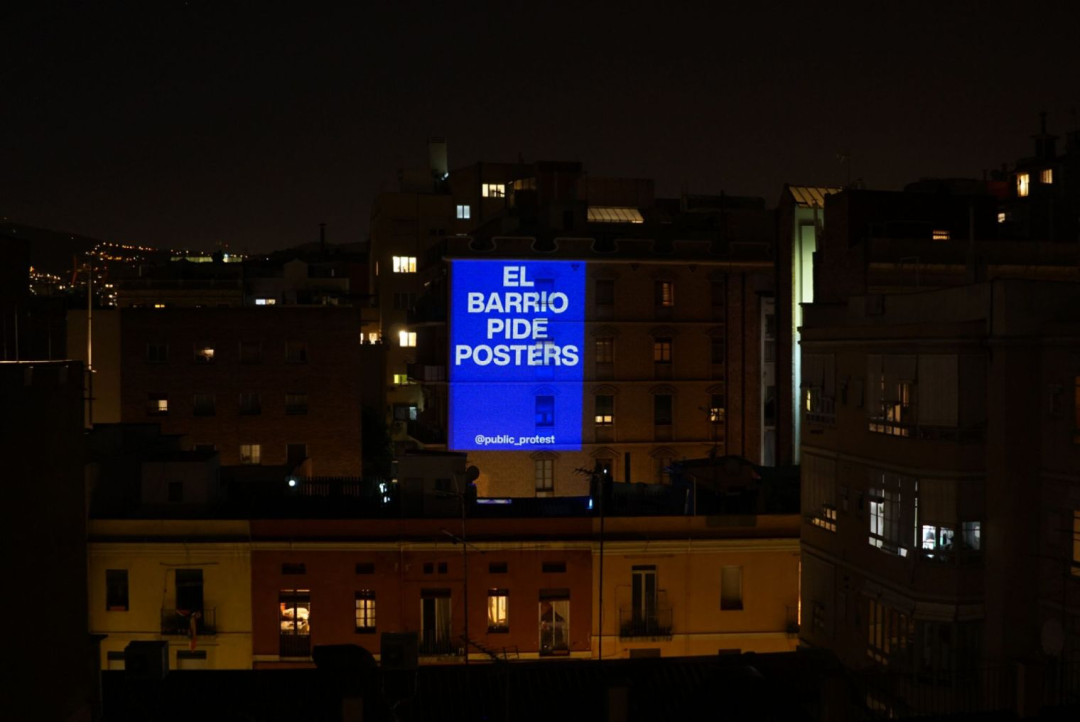 巴塞罗那平面设计师Raúl Goñi,就在大家居家隔离的时间里,精选了部分来自世界各地顶尖设计师的平面作品,将它们投影到附近的建筑物外墙上。