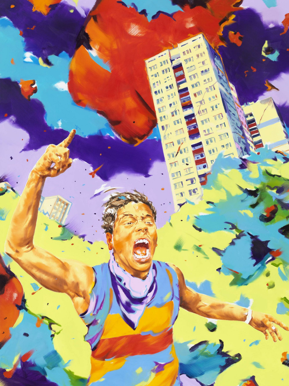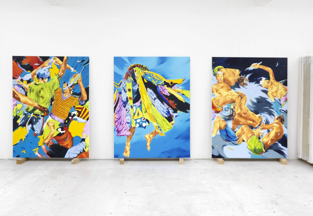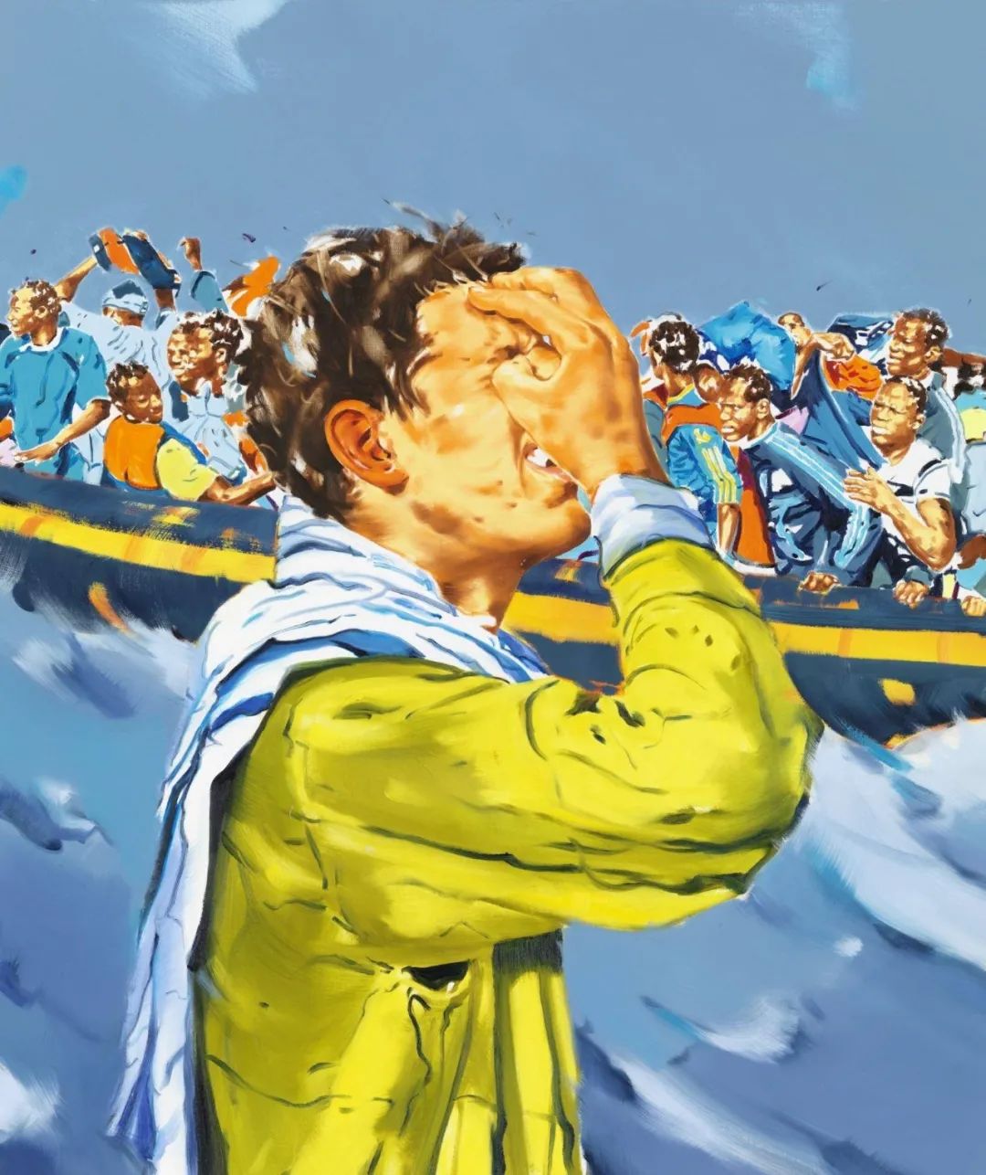 长期以来,我一直被难民的形象所吸引,这些形象是我在柏林卫生和社会事务区域办事处外面亲眼所见的。距离稍远一点,我开始专注于“逃离”的主题,这导致了我在圣保罗展出的几幅画和一系列作品。乍听起来很荒谬,但巴西是一个典型的移民国家,逃离是一个无处不在的话题。这与我个人也有关系,我的父母都是难民。