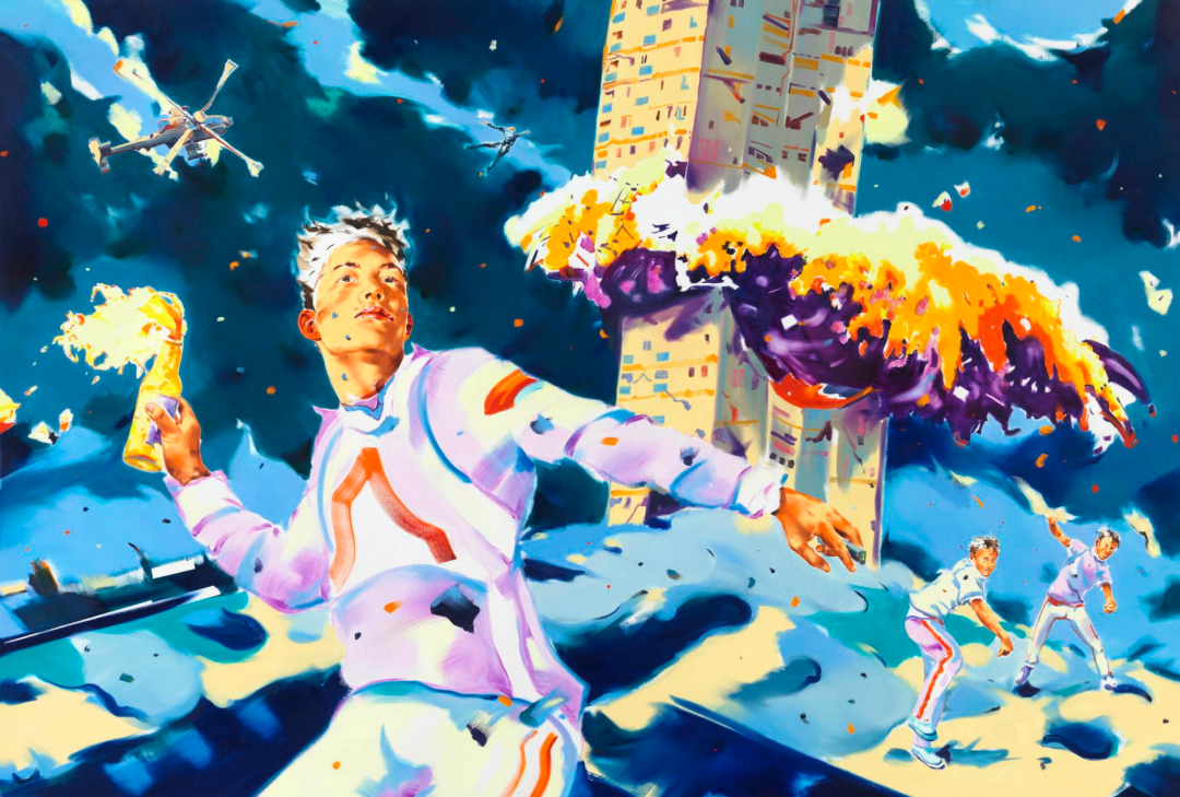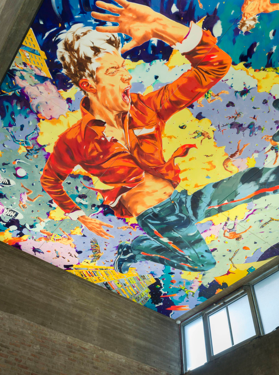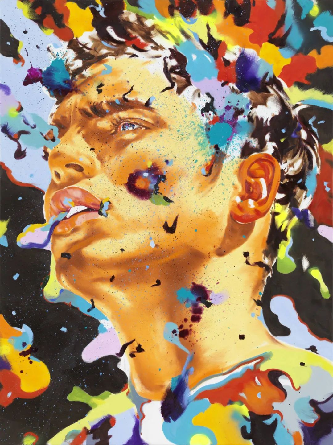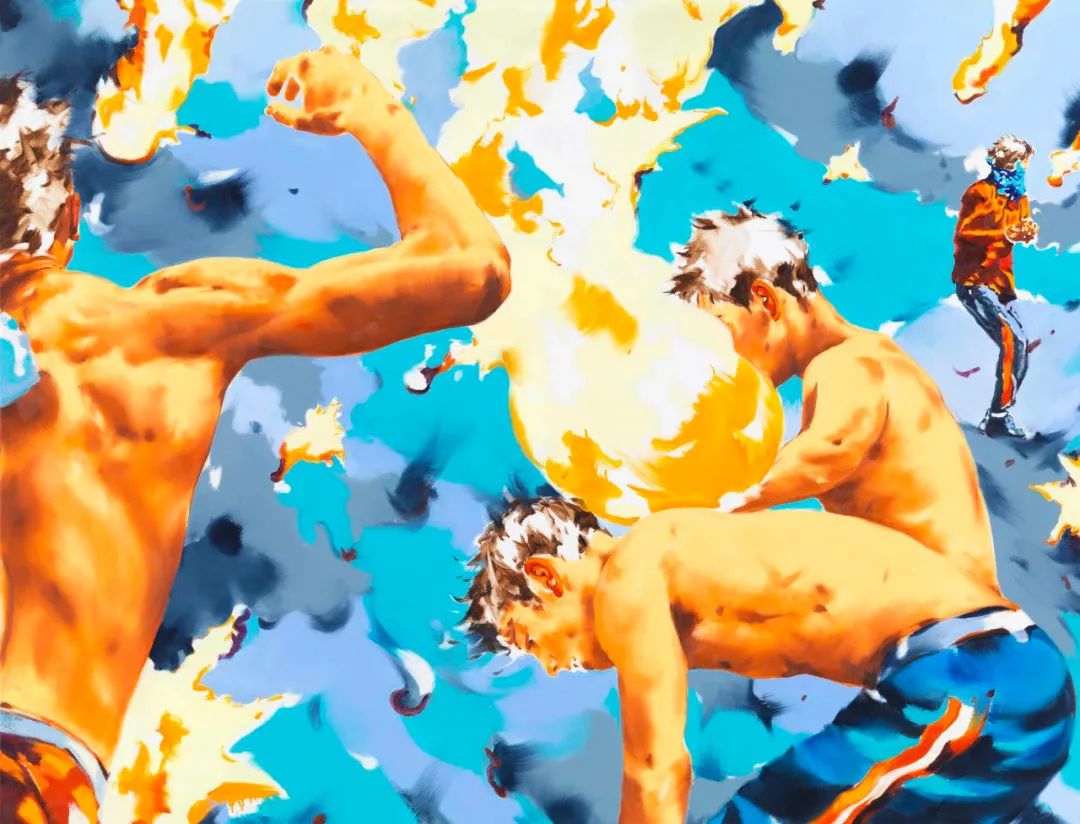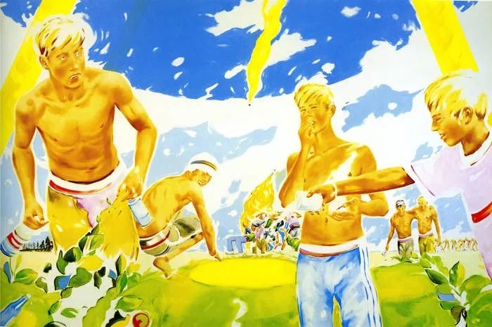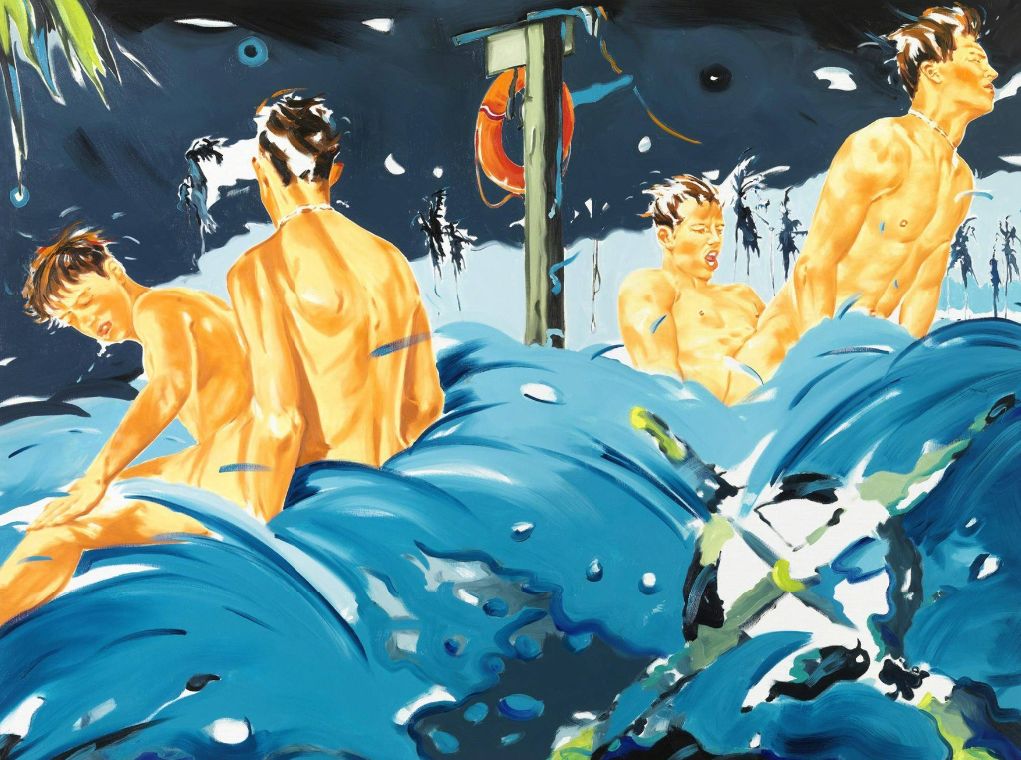 B:关于这些男孩,我想说几句。有些人会问:“他为什么经常画男孩?”即使我要画男孩直到我生命的尽头,不再画其他任何东西,我已经被《男孩遇到女孩》(Boy meets Girl)的故事轰炸了这么多年,也永远不会被抵消。这些都是爱情故事,是一种美学,只涉及到存在于世界各地的少数同性恋者的体验。说直白点,如果我想在我的余生里画一些同性恋的画——这他妈的又有什么问题呢?我也能够接受社会大多数人的文化。