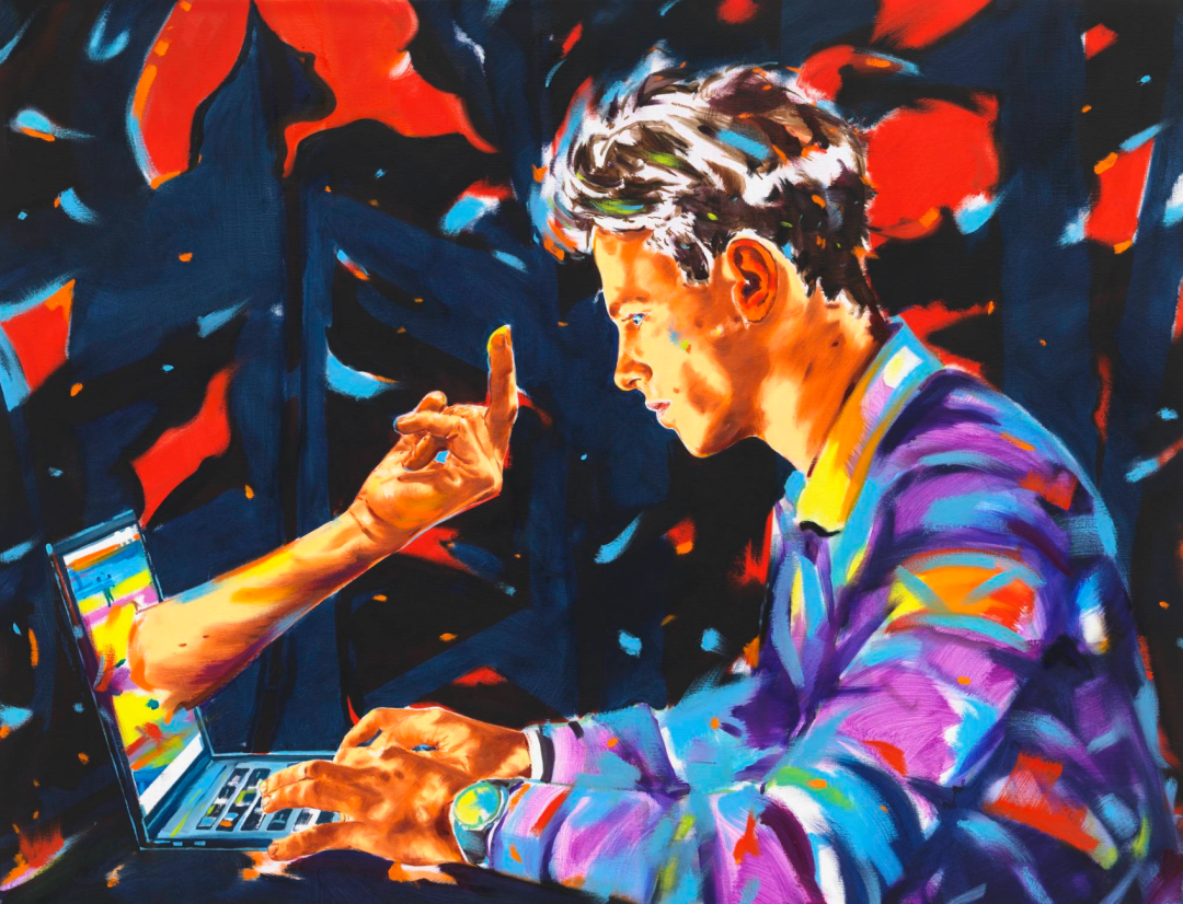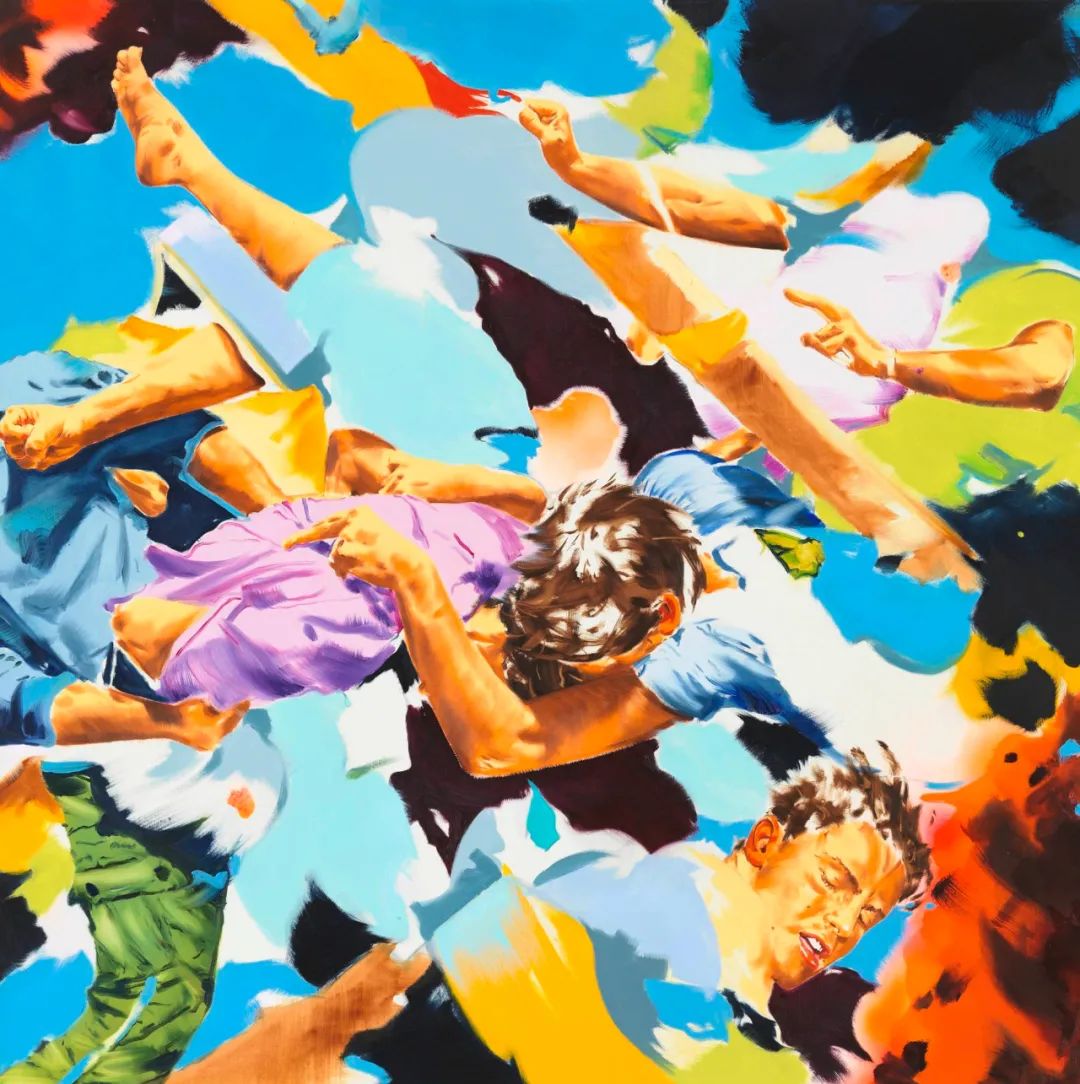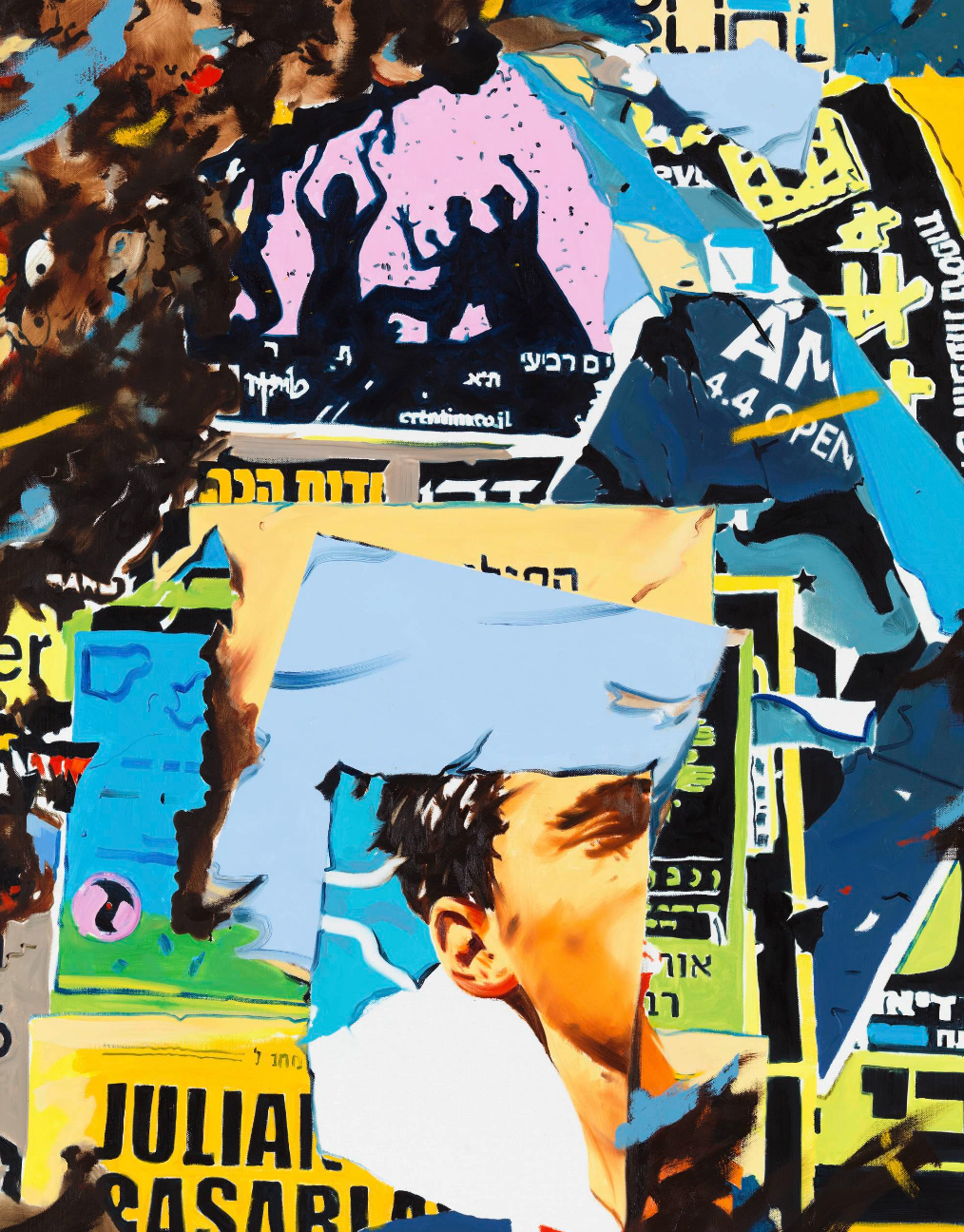 B:在过去,我的生活中发生了一些事情,影响了我很长一段时间。在我去特拉维夫之前,有一段时间,我的条件使我变得非常抽象——没有可辨认的人物,没有摄影元素,我以前绘画的许多特征都消失了。当我到达以色列时,我注意到我在柏林处理过的抽象问题不起作用,在那里我被如此多的现实所包围,所以我回到绘画中,以一种精确的比喻的方式。