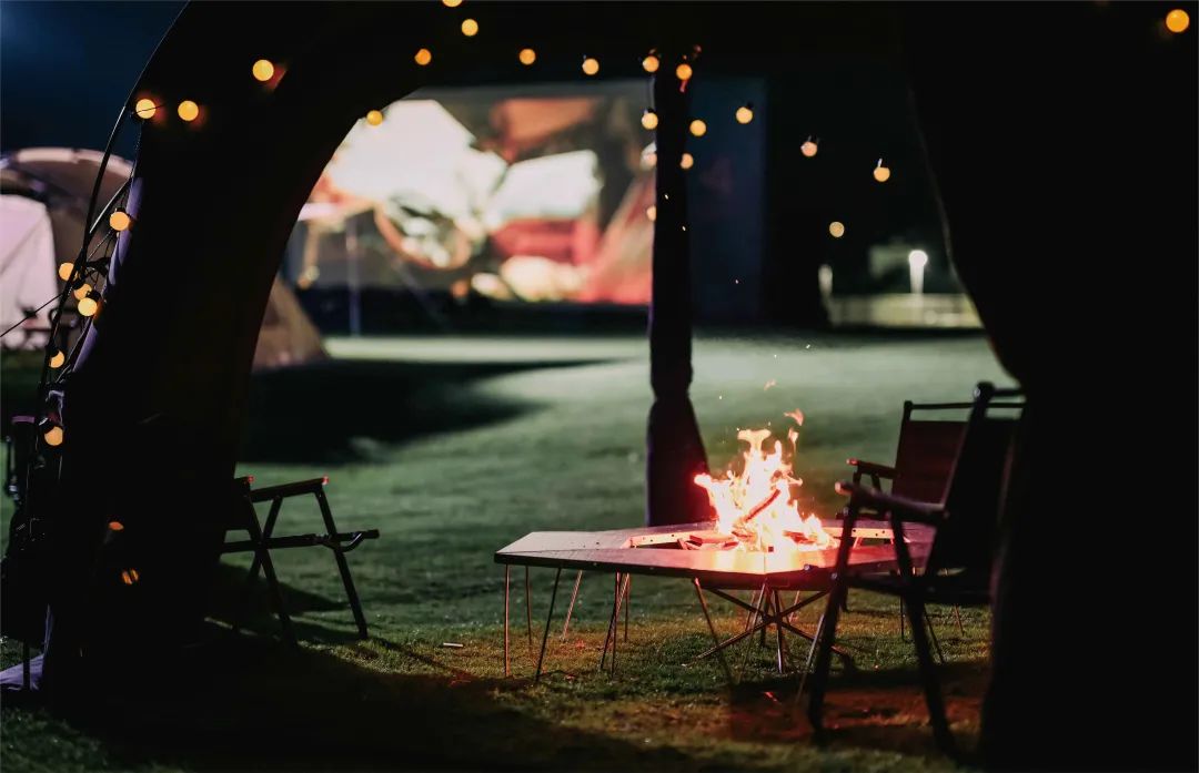 在放映区与观影区之外,露营体验区亦有别样趣味。三五亲友围坐在一起,享受美酒与电影,和故事情节一样动人的,还有彼此被光影映亮的、温暖的面容。