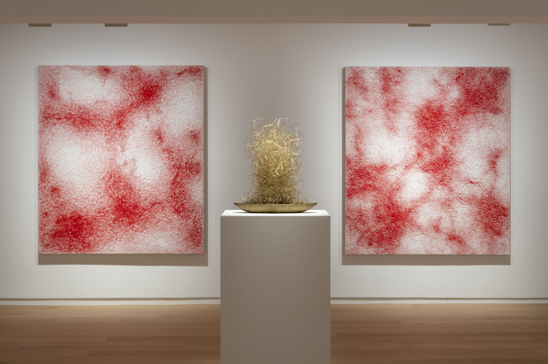 Chiharu Shiota 在纽约 Galerie Templon 举办的展览“生命迹象”(Signs of Life)对提出了质疑。“网络”是一种有生命的东西,很像构成宇宙的结构或我们大脑的神经元。在两周的时间里,现场聚集了一个大型的红线装置,代表着跨越国家和边界的数据、集体记忆和知识的永恒联系。