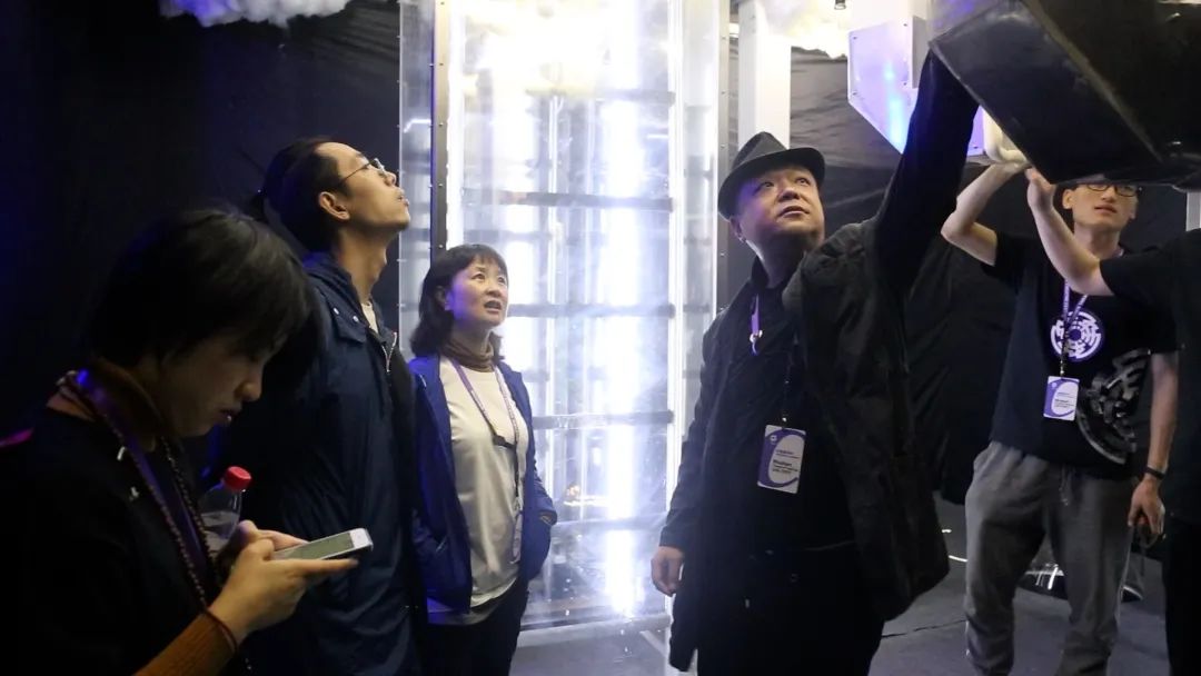 他觉得雕塑应该是一个空间的艺术,不该局限在固体的加减法造型手段上。在固体之外,声音、气味、光以及水所代表的流体,都可以构成媒介来完成一个空间艺术的创作。