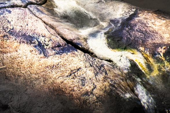李二男在其数字影像装置《爆炸的山水》中,试图将东西方对于自然的两种理解与表达方式(山水和风景)融合起来。前景的人造岩石体,暗示着一种主体与客体分离的焦点透视;而作为背景的数字屏幕,则展现出代表东方山水经典的《早春图》。潺潺流淌的溪水被投影到岩石上,宛如是从屏幕中倾泻而出。观众从岩石一侧投出定向目光,凝视着这一经典之作,这一过程隐喻着当代人对传统的遥望。在数字技术的编辑下,郭熙的《早春图》悄然经历了一轮又一轮的重绘。各种艺术风格的演绎,使其变得面目全非,最终在一声巨响中陷入崩溃——从画面中心展开“爆炸”。