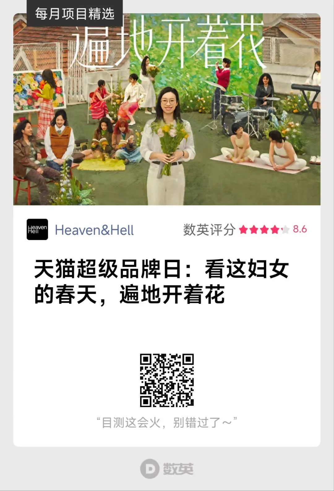 今年3·8妇女节,金思涵及其团队为天猫超级品牌日打造短片《遍地开着花》,基于近几年来,关于“女性”议题的声音越来越多,或是一部电影,一个广告,一个小小的设计,这些或大或小的声音,都在实实在在地让女性的处境都在变得更好。