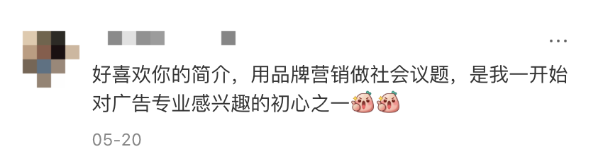 在金思涵小红书笔记的评论区,有这样一条评论很打动我:“好喜欢你的简介,用品牌营销做社会议题,是我一开始对广告专业感兴趣的初心之一。”