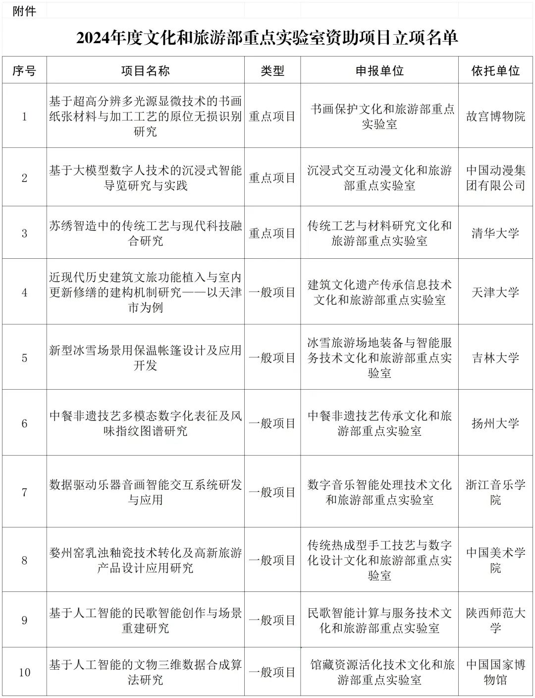 - 文化和旅游部关于印发2024年度文化和旅游部重点实验室资助项目立项名单的通知