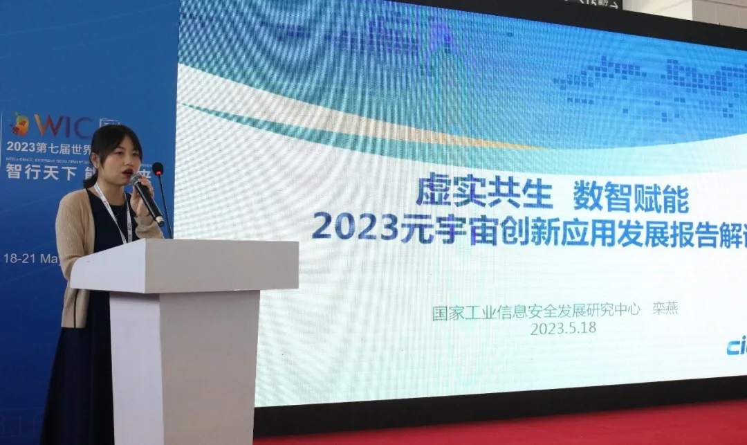 2023年5月18日,由天津市人民政府、国家发展和改革委员会、科学技术部、工业和信息化部、国家广播电视总局、国家互联网信息办公室、中国科学院、中国工程院、中央广播电视总台和中国科学技术协会共同举办的第七届世界智能大会在天津召开。国家工业信息安全发展研究中心系统所测评部主任、数字孪生技术与产业应用实验室主任栾燕应邀参加由北京物联网智能技术应用协会主办的大会同期论坛“2023人工智能技术创新与应用合作发展论坛”,并发布《虚实共生 数智赋能—2023元宇宙创新应用发展报告》和《元宇宙创新发展伙伴计划及首批成员单位名单》。