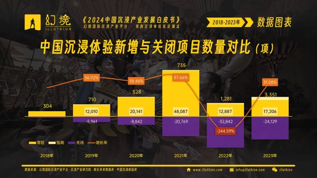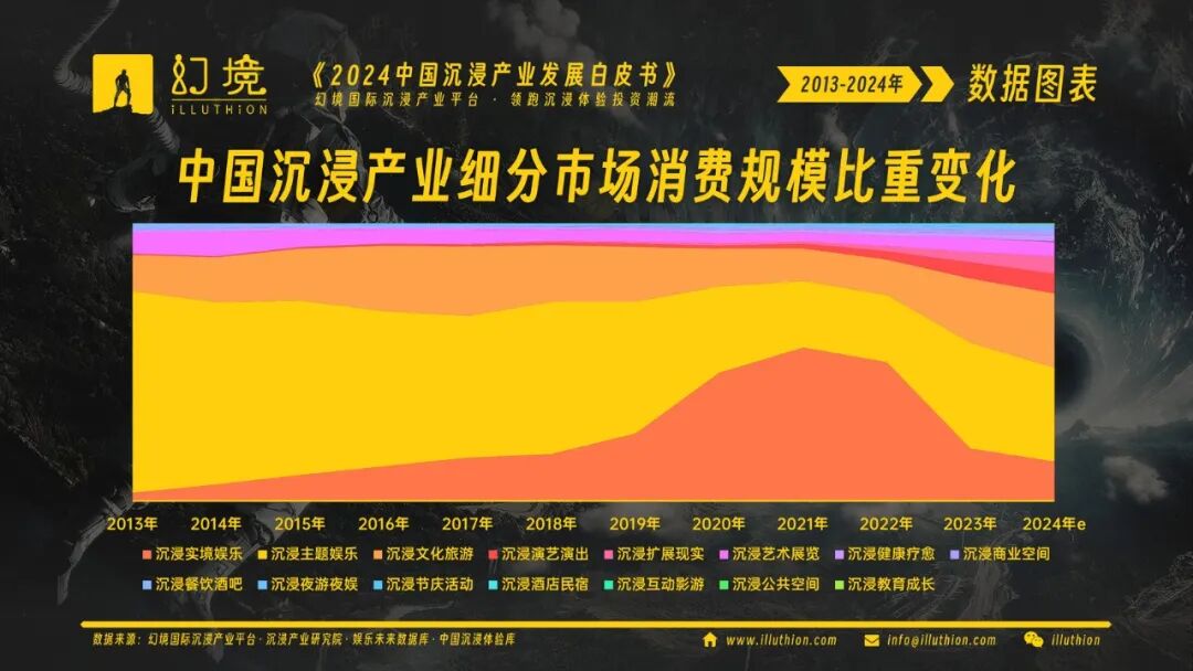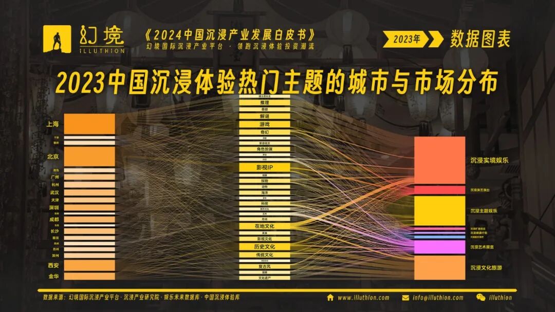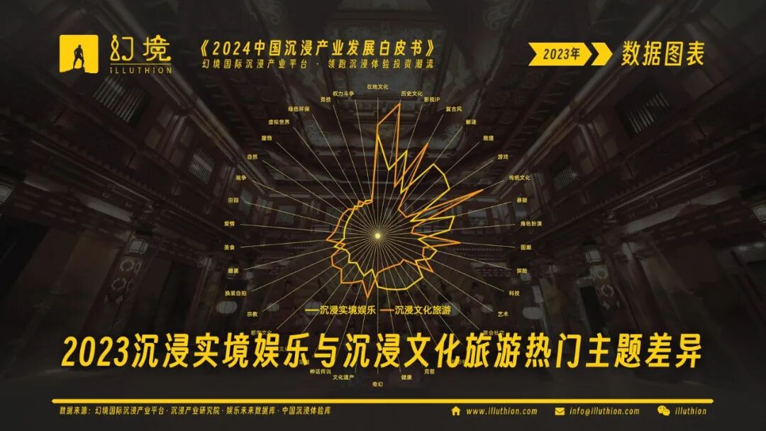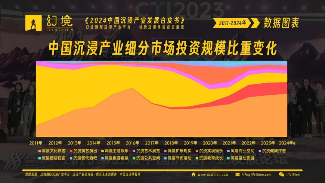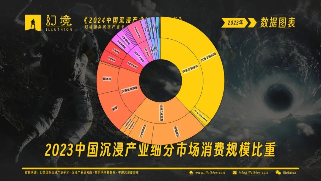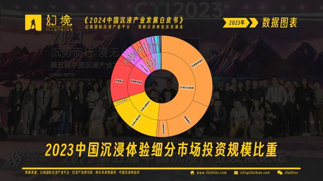 特别值得关注的是,沉浸酒店民宿、沉浸扩展现实、沉浸演艺演出、沉浸节庆活动、沉浸餐饮酒吧、沉浸商业空间细分市场自2019年以来分别增长了1,480.1%,745.43%,554.5%,385.7%,267.2%和227.14%。虽然,有些细分市场尚属小众,但其“潜力股”的特质缺一览无遗,是值得投资者在2024年关注的价值洼地。