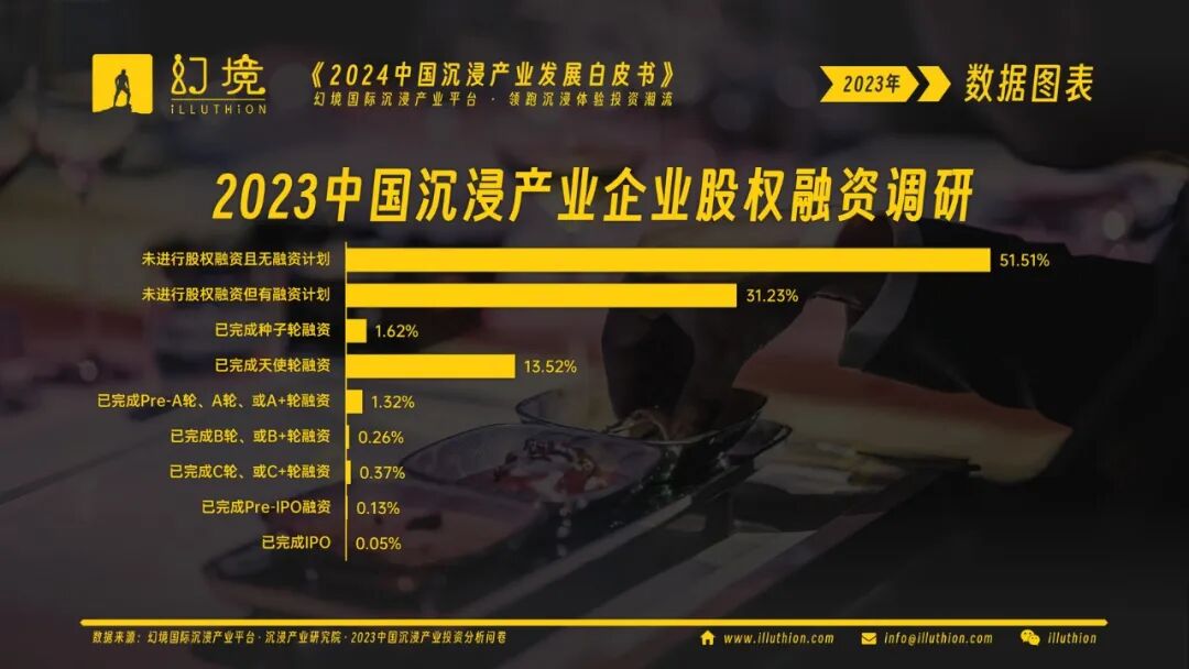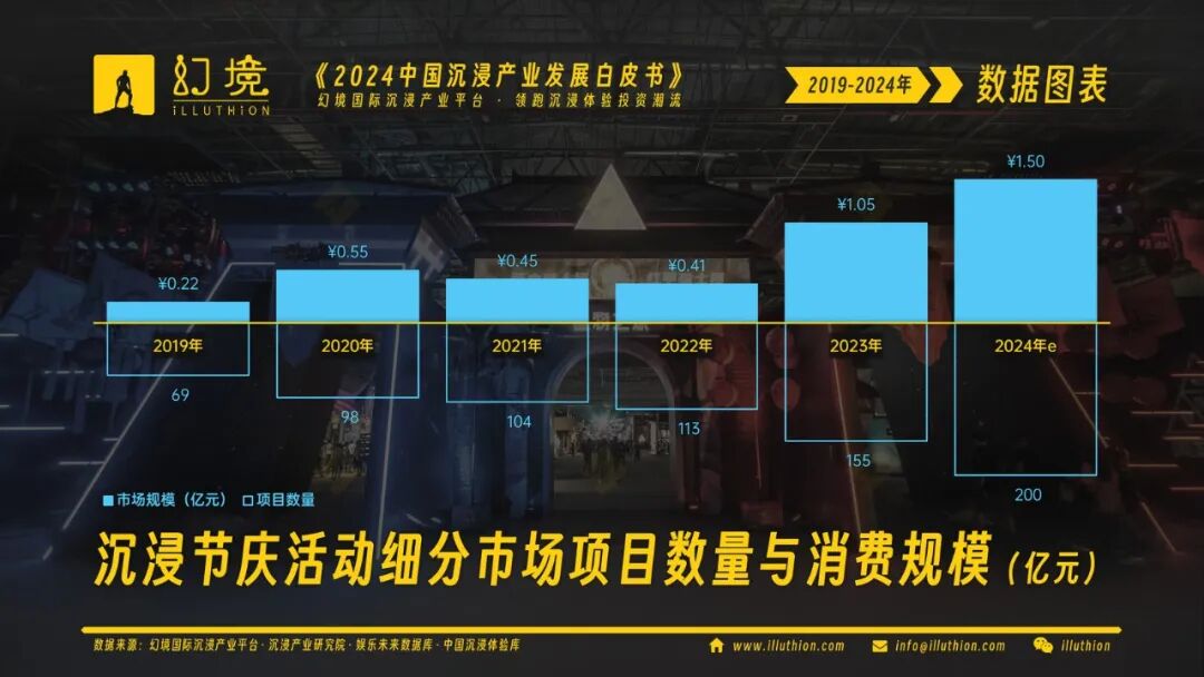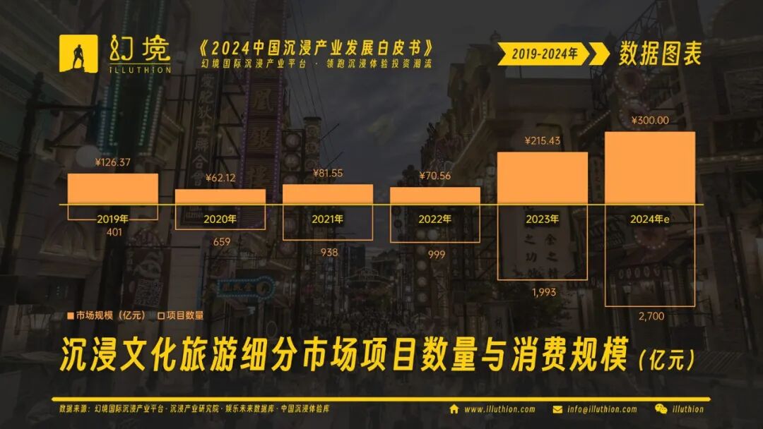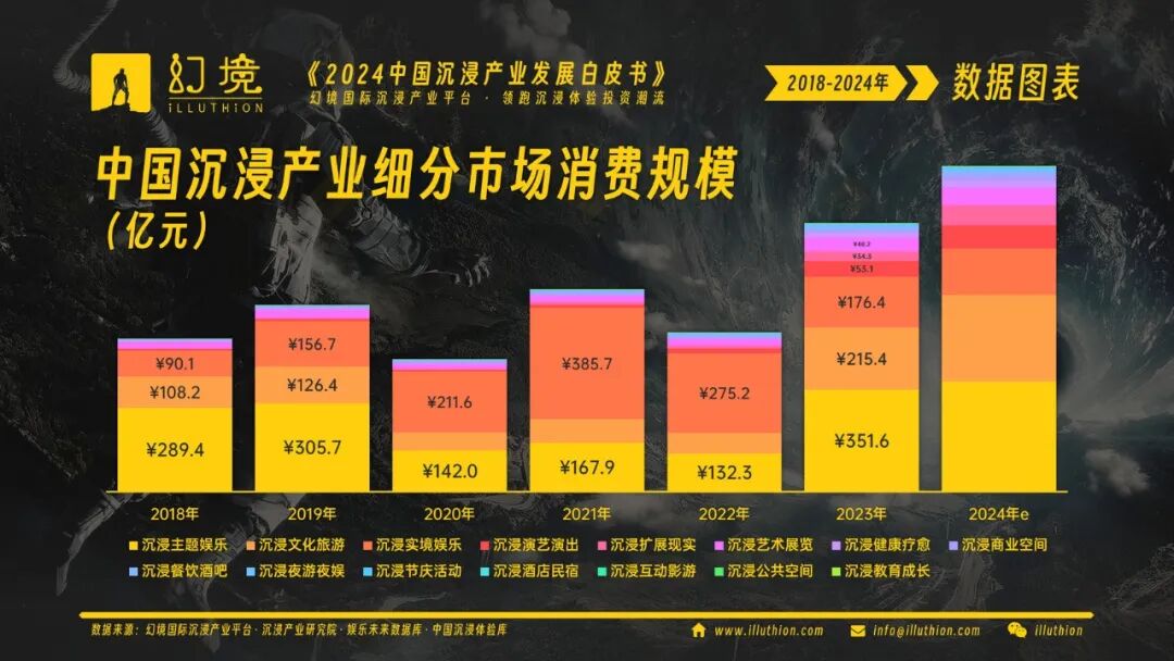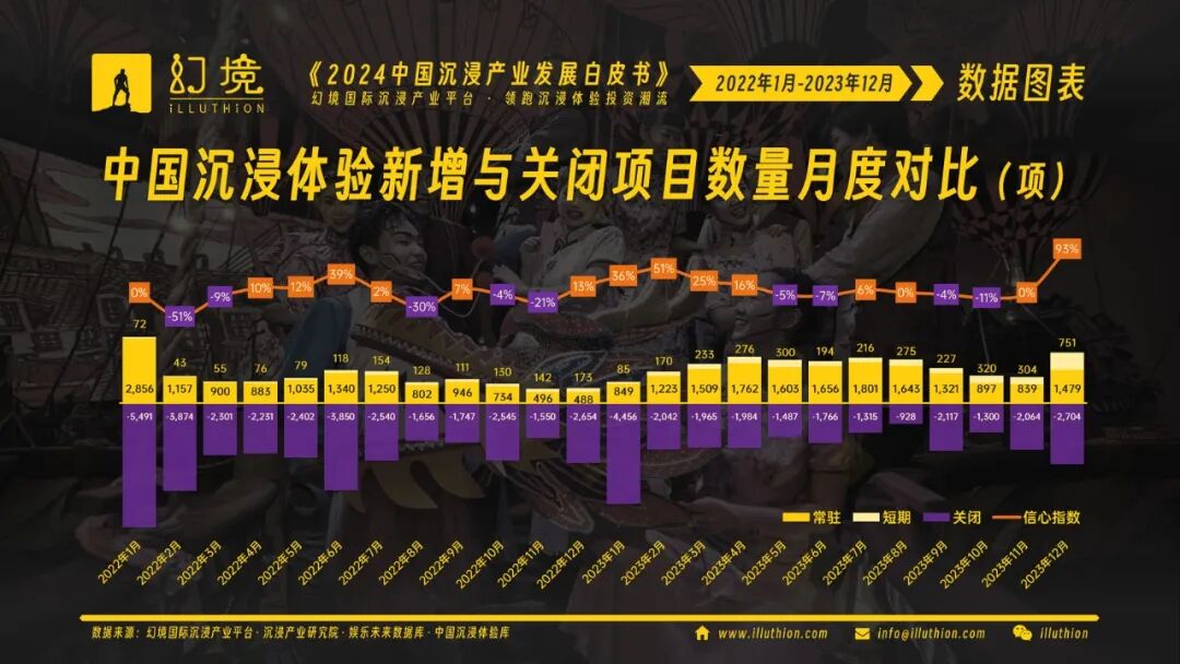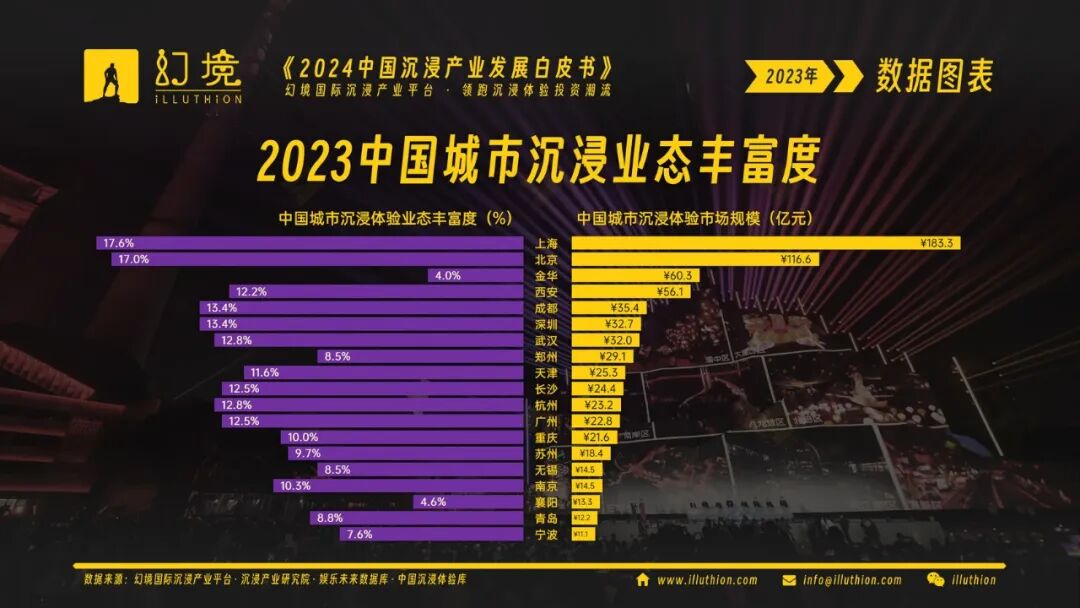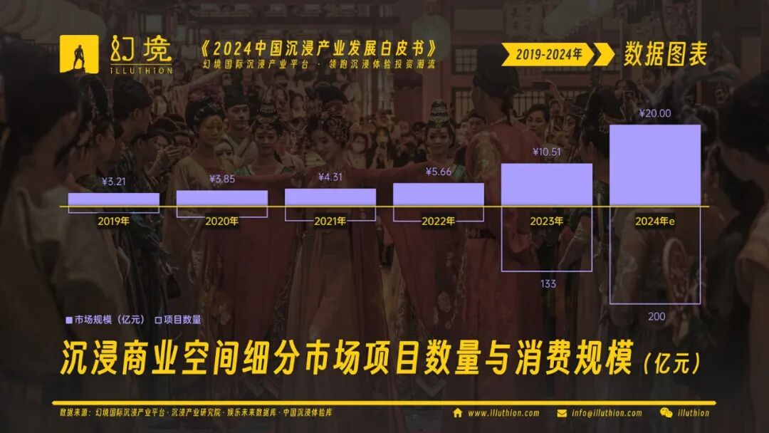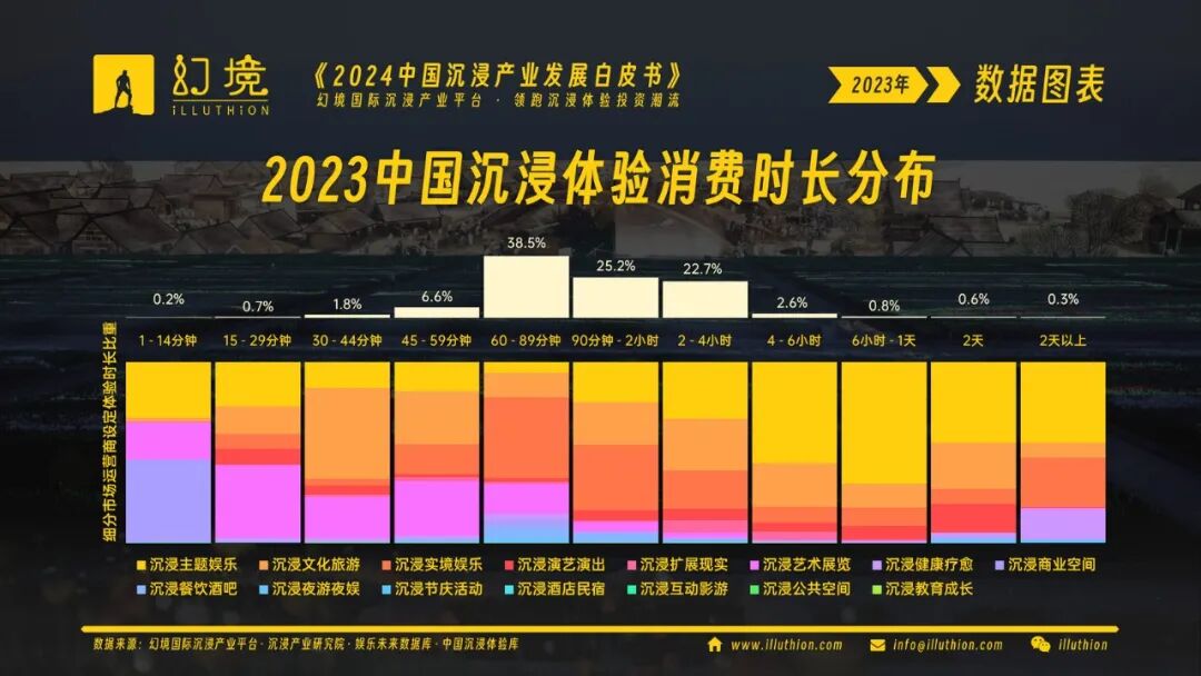 特别值得关注的是,沉浸酒店民宿、沉浸扩展现实、沉浸演艺演出、沉浸节庆活动、沉浸餐饮酒吧、沉浸商业空间细分市场自2019年以来分别增长了1,480.1%,745.43%,554.5%,385.7%,267.2%和227.14%。虽然,有些细分市场尚属小众,但其“潜力股”的特质缺一览无遗,是值得投资者在2024年关注的价值洼地。