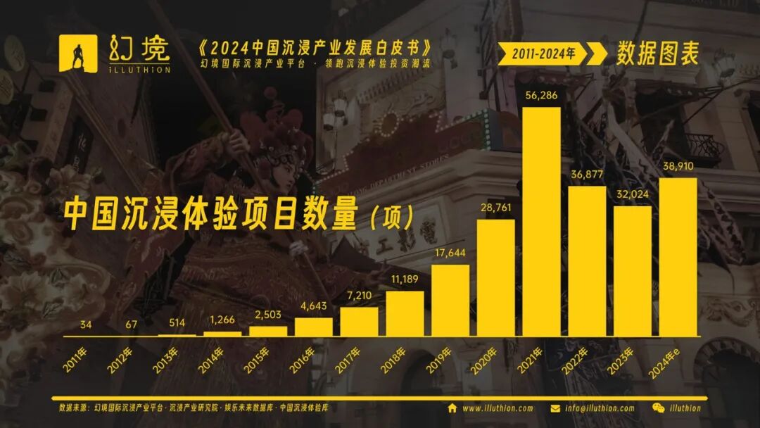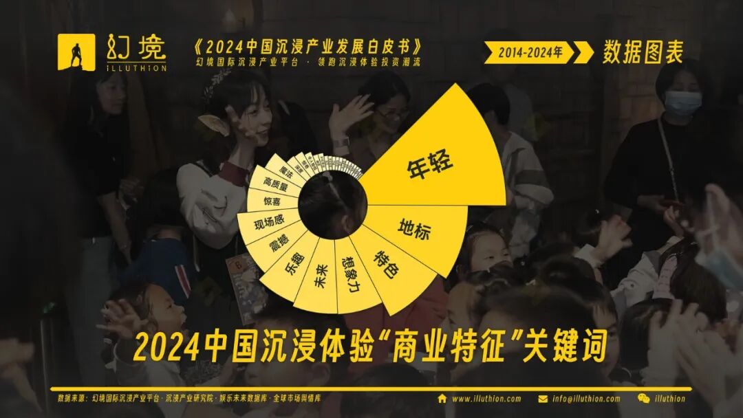 截至2023年,中国的沉浸体验项目数量已达到32,024个,创造了近92.8万个就业岗位,并预计在2024年新增20万个岗位。中国沉浸产业消费市场规模已达927亿元,投资规模上升至1,006.3亿元,总产值更是达到了1,933.4亿元,预计2024年将突破2,400亿元大关。在全球26个沉浸产业较为成熟的国家中,中国在项目数量、消费市场规模、投资规模和总产值方面均居全球首位。多元化的沉浸体验主题包括影视IP、历史文化、游戏、本地文化、解谜、推理、传统文化、奇幻、复古风、角色扮演、科技和探险等,不仅受到了广大消费者的喜爱,也显示出巨大的市场潜力,成为了创意与资本的新磁场。