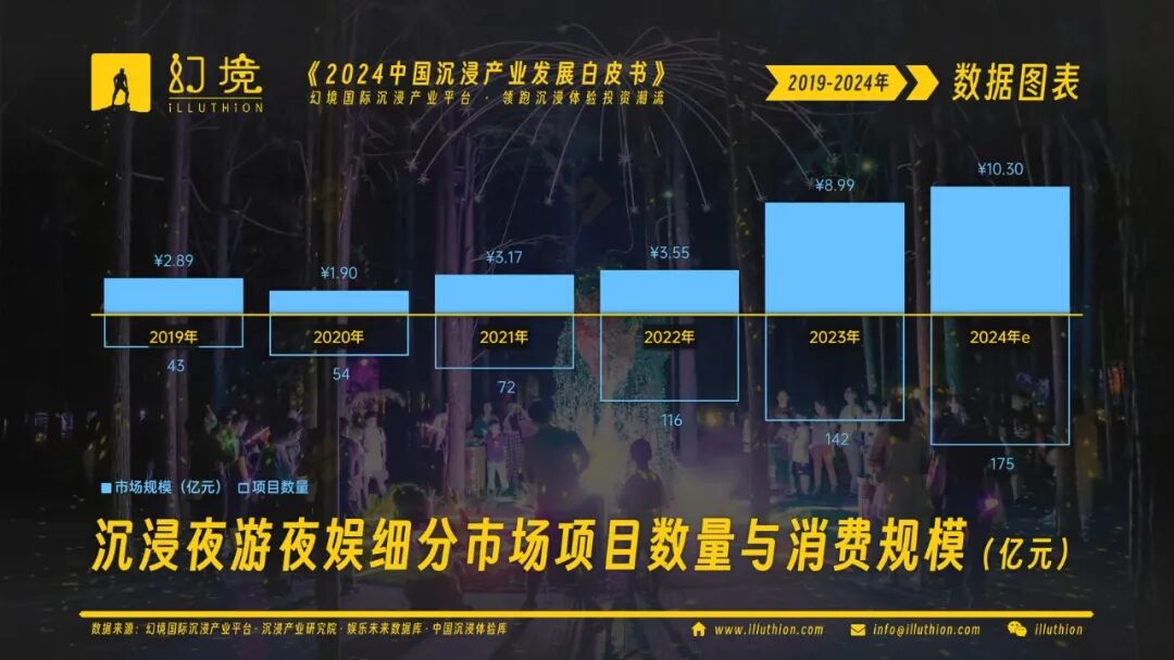 「幻境国际沉浸产业平台」将演艺夜游和光影演艺夜游这两类沉浸业态纳入沉浸文化旅游细分市场,故不计入沉浸夜游夜娱细分市场相关统计数据。