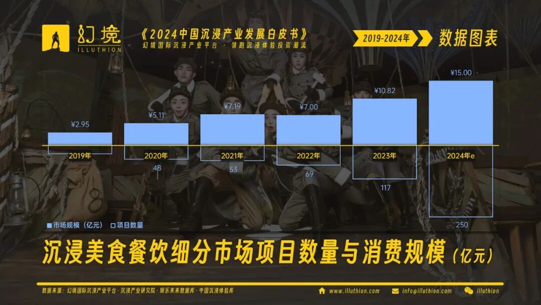 沉浸美食餐饮细分市场,特指以沉浸体验作为美食餐饮核心吸引或消费项目的消费市场。中国的热门沉浸美食餐饮业态包括:餐饮沉浸综合体、主题沉浸餐厅、主题沉浸酒吧、美食互动戏剧、沉浸咖啡馆、沉浸餐秀、沉浸演艺餐厅、光影沉浸餐厅、戏剧酒吧和魔术酒吧等。沉浸体验可以居于美食餐饮项目的核心,也可以是美食餐饮项目的辅助。