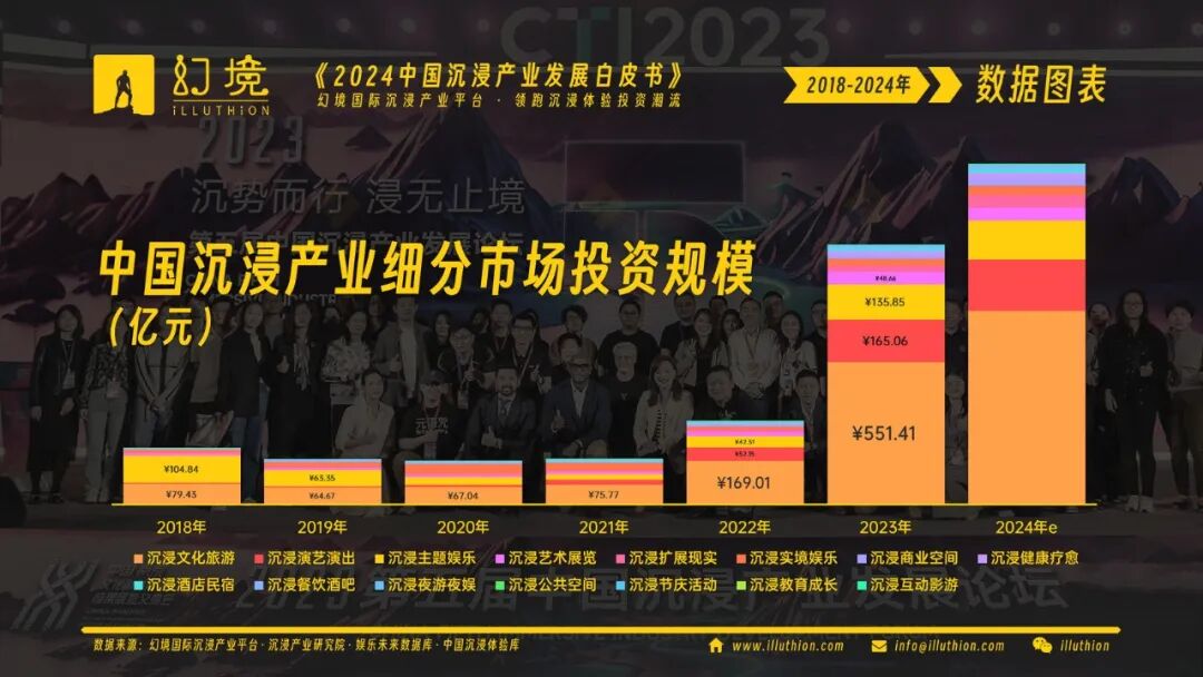 来自沉浸文化旅游细分市场的投资总额为551.41亿元,占中国沉浸产业总投资额的54.79%;
