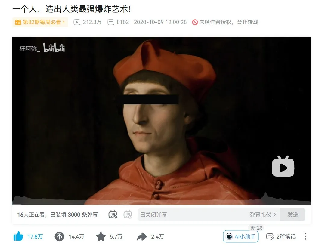 狂阿弥是我很早之前就关注的up,应该是做张艺谋的视频关注的。
