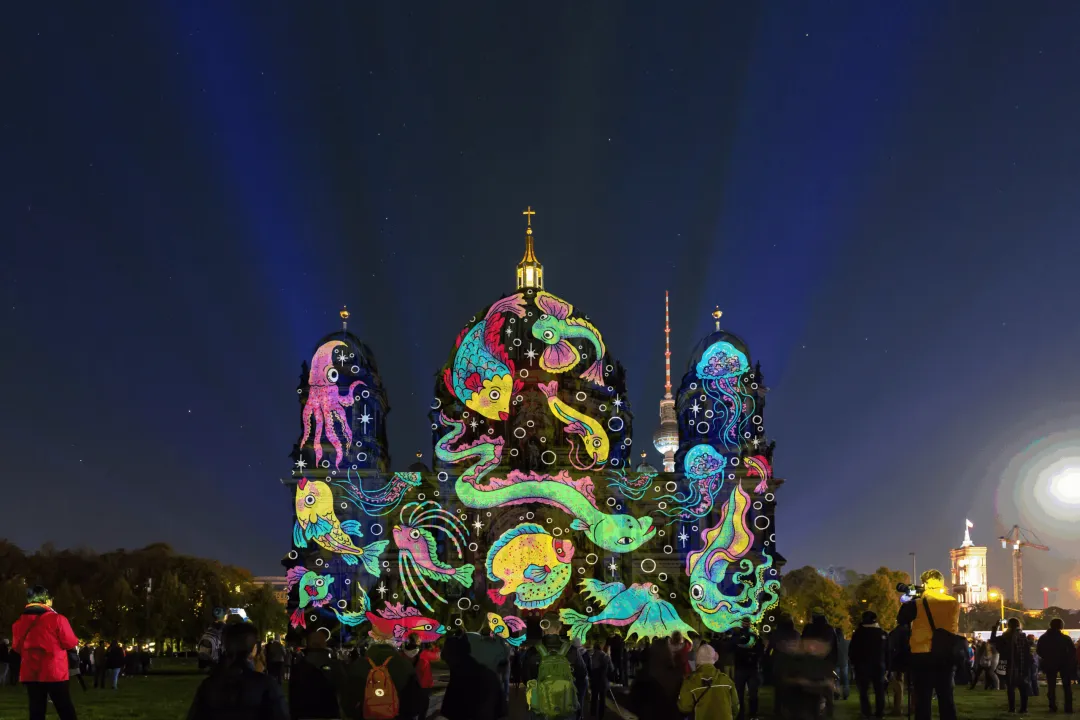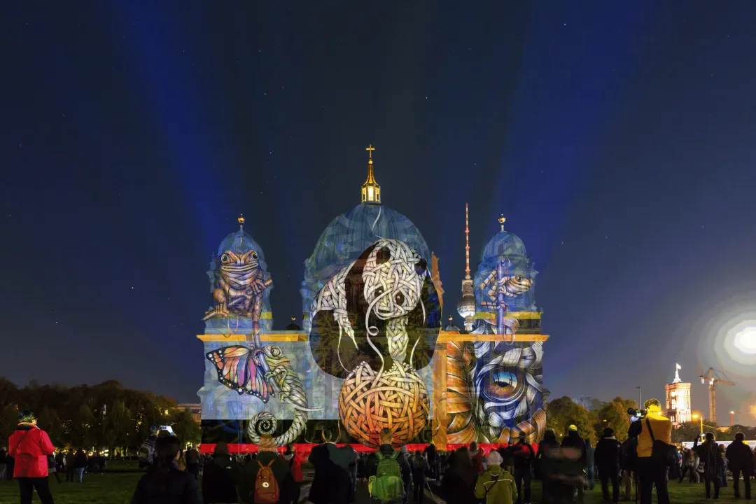 恢弘的柏林大教堂永远是灯光节的最佳背景。宽阔的结构和建筑元素为艺术家团队提供了充足的空间来实现令人着迷的效果,以无与伦比的方式让建筑栩栩如生。这里有多达9个参赛作品的展示!