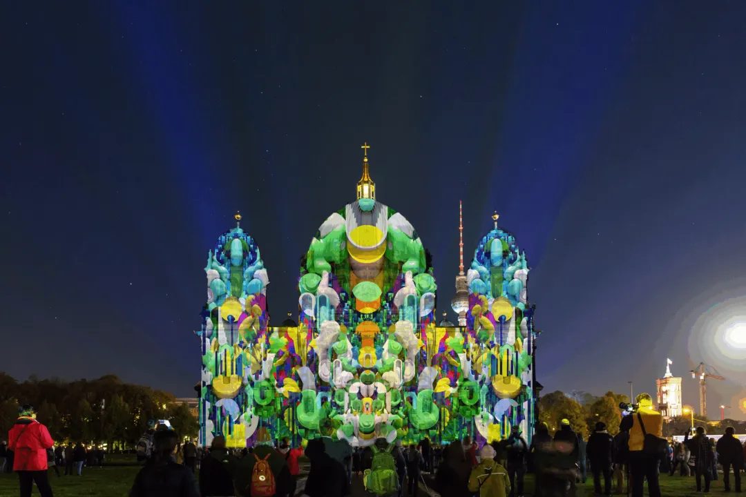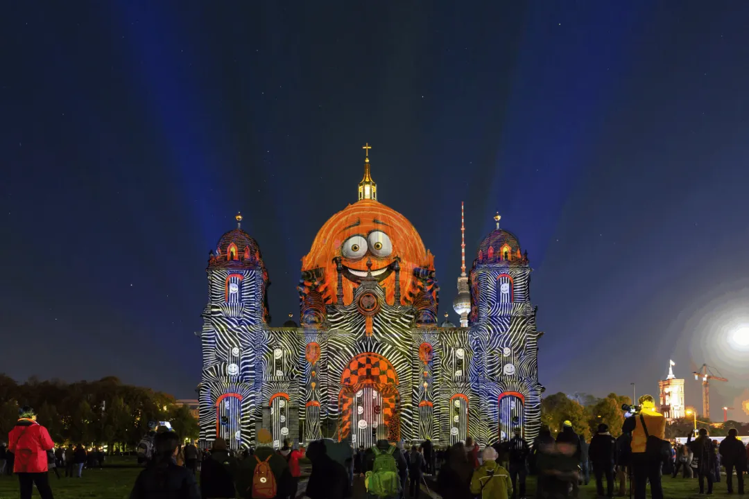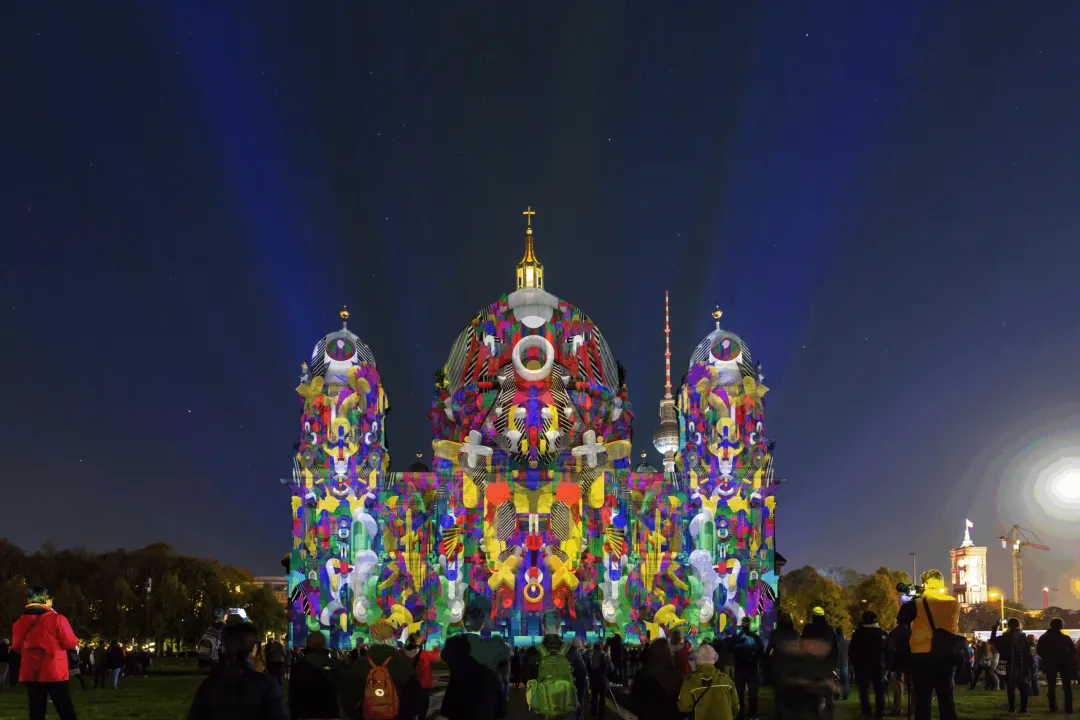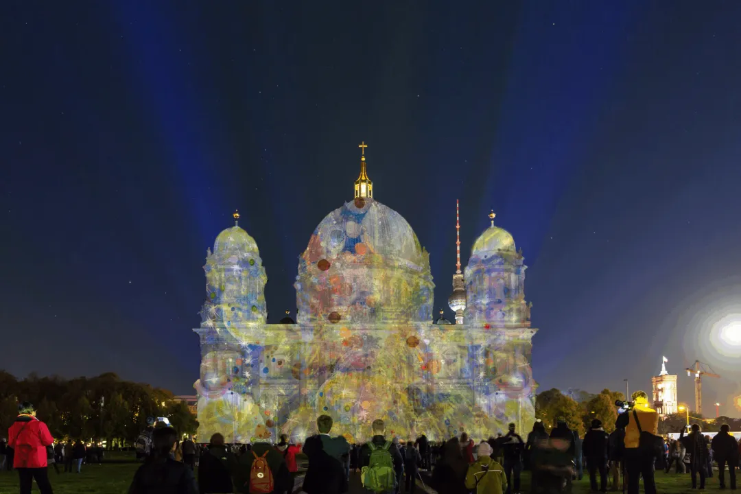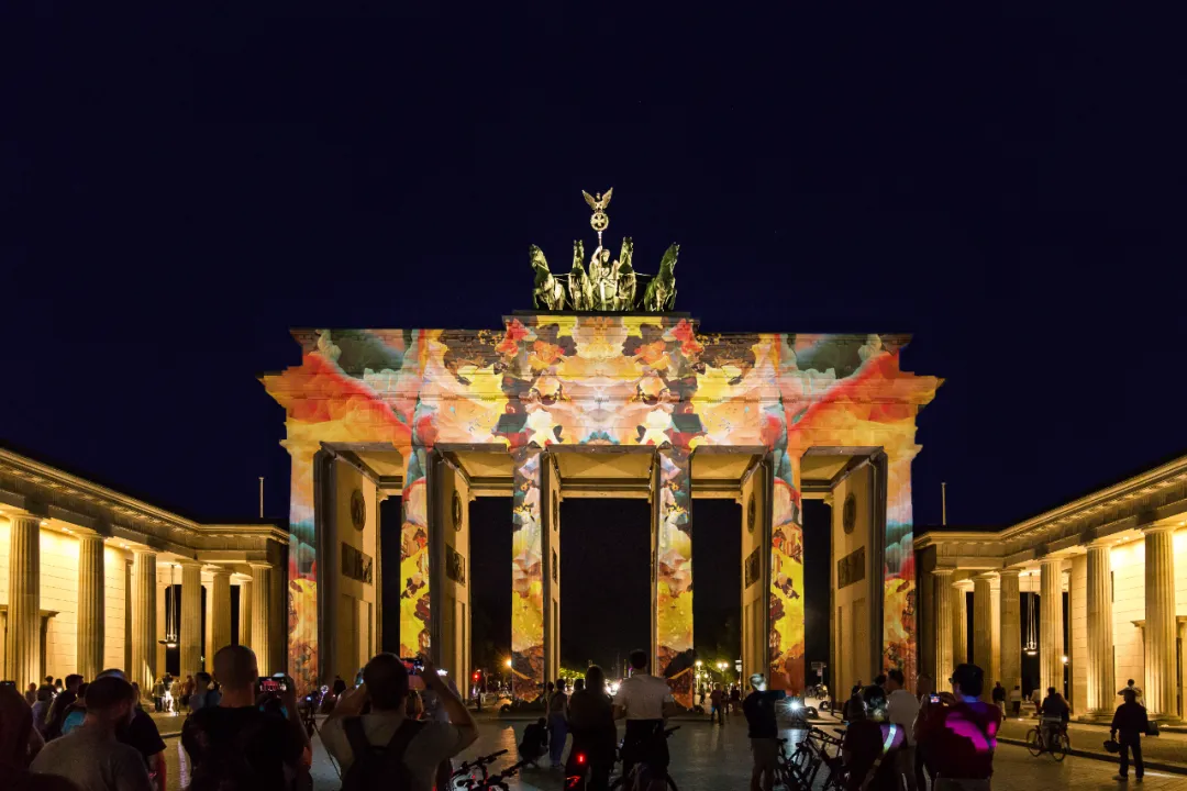 当秋夜凉意浸染柏林,整座城市却因灯光节沸腾。10月8日到15日,每晚19:00-23:00,柏林的50多处地标建筑被85件灯光作品照亮。柏林大教堂披上流动的彩幕,勃兰登堡门化作巨大的画框,胜利纪念柱像一支发光的火炬......来自18个国家的国际艺术家们在这里挥洒创意,把“Let’s Shine Together”(让我们一起闪耀)的口号写进夜空。