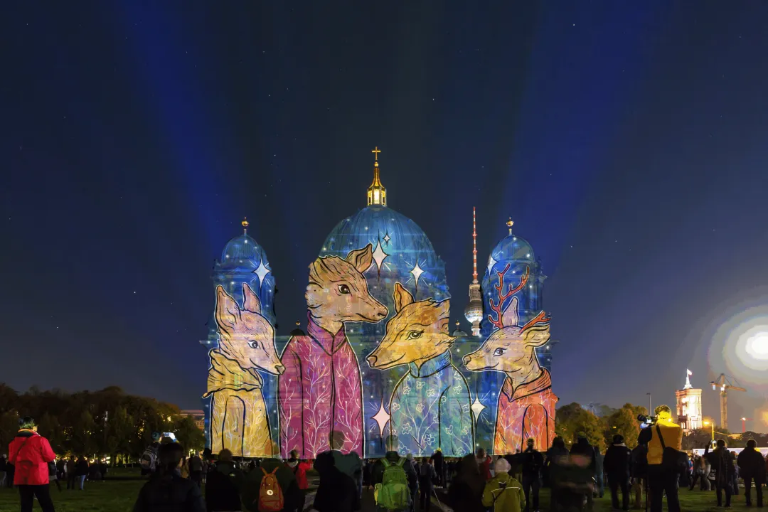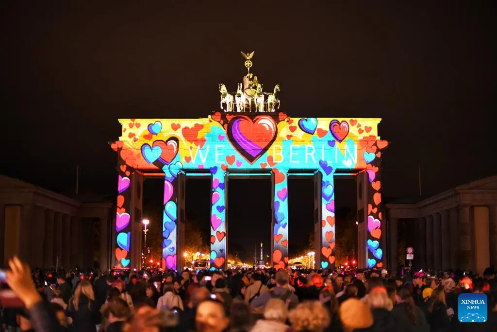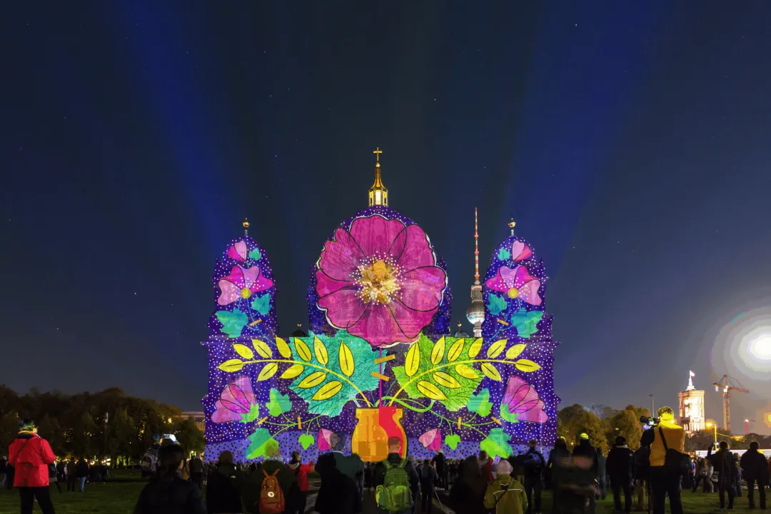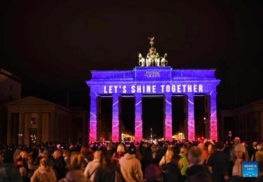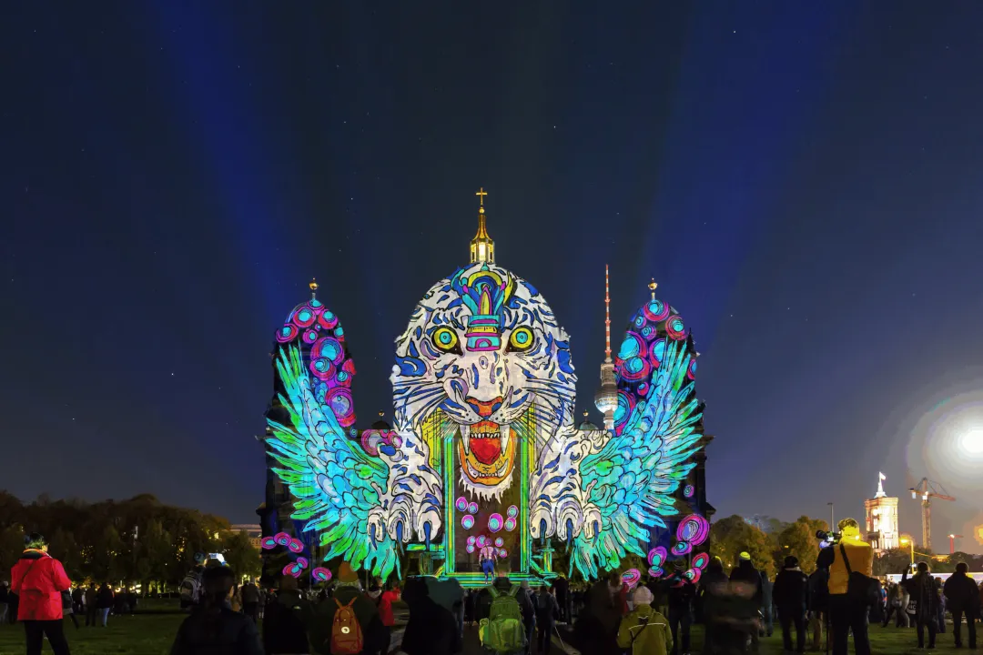 当秋夜凉意浸染柏林,整座城市却因灯光节沸腾。10月8日到15日,每晚19:00-23:00,柏林的50多处地标建筑被85件灯光作品照亮。柏林大教堂披上流动的彩幕,勃兰登堡门化作巨大的画框,胜利纪念柱像一支发光的火炬......来自18个国家的国际艺术家们在这里挥洒创意,把“Let’s Shine Together”(让我们一起闪耀)的口号写进夜空。
