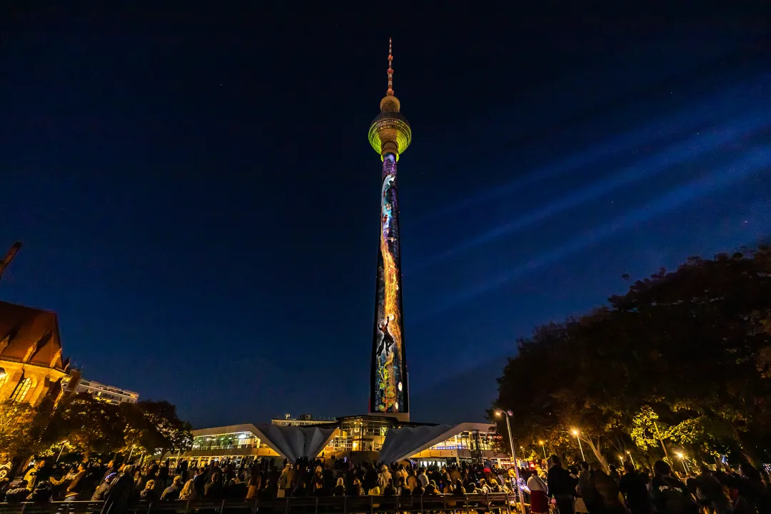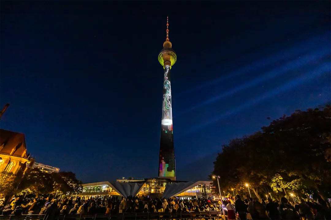 作品开启了一场极其个人化的光之旅,是探索自我表达自由的有力叙事述说。一个通过裂缝生长的花园,每个场景都将柏林电视塔变成一个垂直的花园。通过坚持和努力,一个明亮的内心世界逐渐成形——它揭示了治愈、清晰和重新发现的自我认同感。