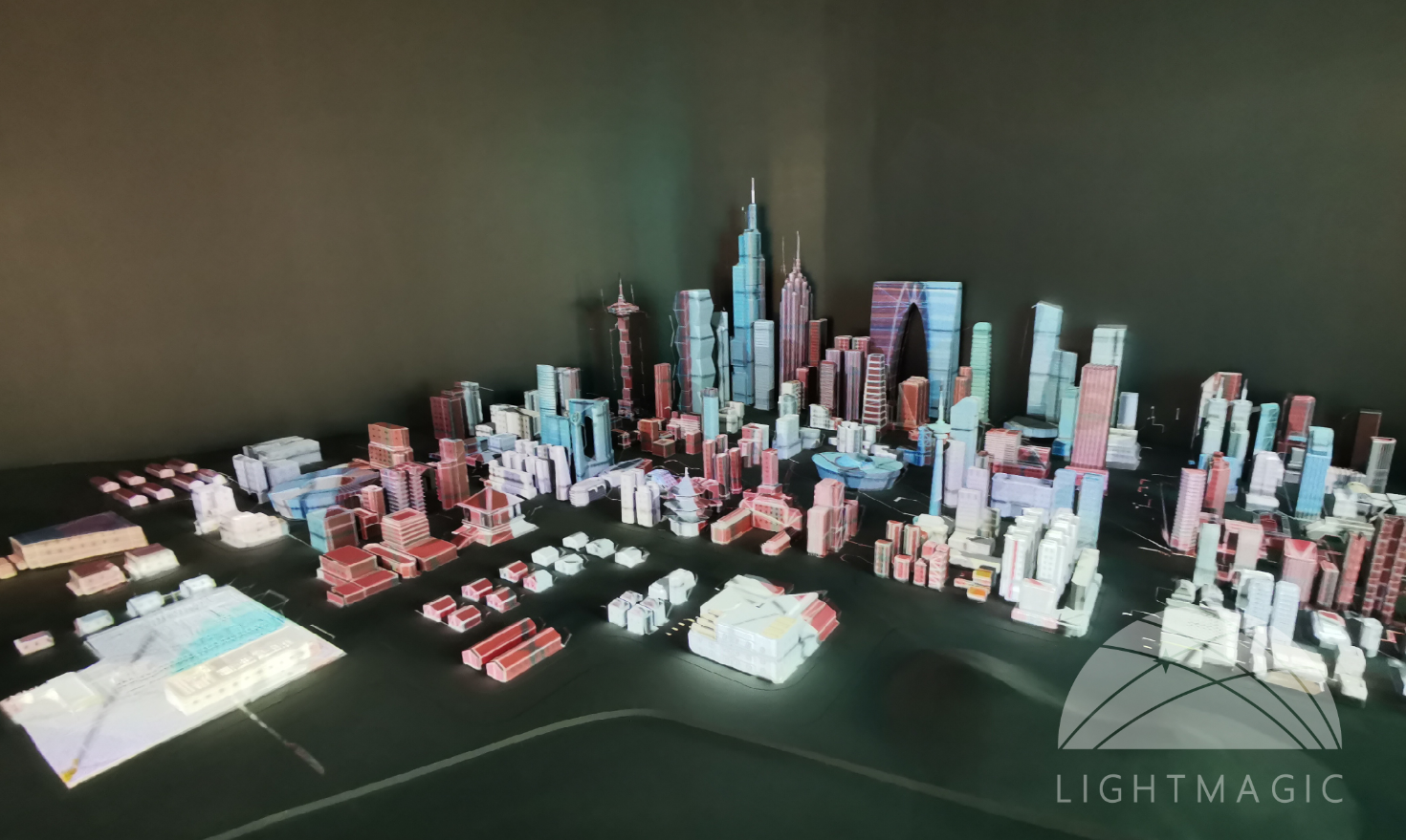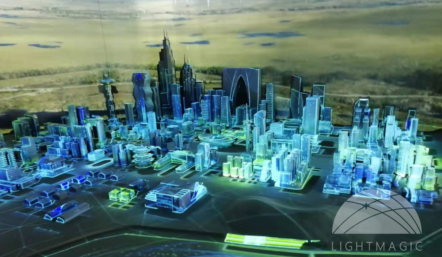 项目位于国家电网某展厅,是一个展示国家电网战略形象的大型立体的、多方位3DMapping秀;由大型三折幕、50㎡的素模沙盘组成,运用13台高清投影机,全方位多角度的对模型及三折幕进行投影。通过光魔软件Immersive6.0、Paint矢量绘图、FusionPlayer融合播放系统,将看似寻常的素模沙盘、灯光联动、数字内容精准融合,不再局限于平面,而是立体的、多方位的让Mapping更具层次感、活力与生命力。从而完美的展现了国家电网的战略背景以及当地电能格局的建设与发展。