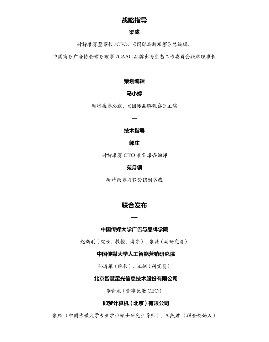 11 月 4 日,由《国际品牌观察》杂志、耐特康赛联合出品,中国传媒大学广告与品牌学院、中国传媒大学人工智能营销研究院、北京智慧星光信息技术股份有限公司、即梦计算机(北京)有限公司联合发布的《生成式AI时代 品牌战略指南》白皮书(以下简称 “白皮书”)正式上线。