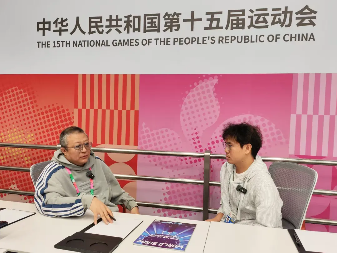 美术总设计 尚天宝(左)现场接受WORLD SHOW采访