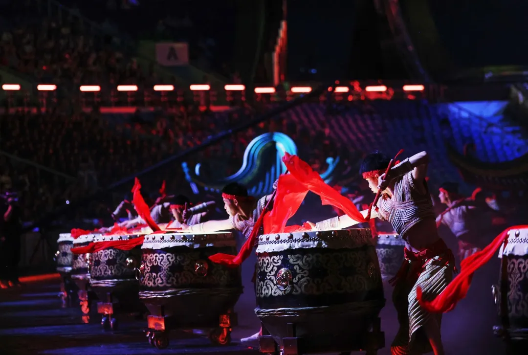此次开幕式现场,广东奥体中心构筑为同心圆的独特空间,“水”和“YUAN”成为开幕式关键词,紧抓粤港澳三地水元素,打造灵动舞台。