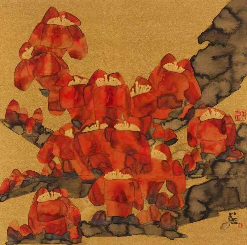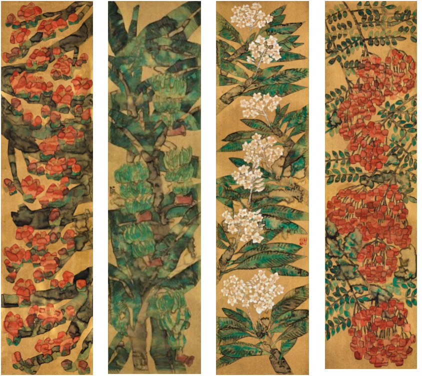 林蓝作品《岭南风情——木棉 、芭蕉、 蛋花 、荔枝》