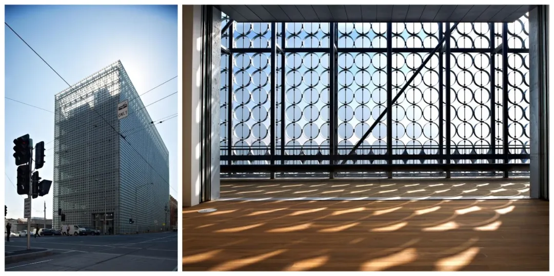 好比2012年皇家墨尔本理工大学设计 RMIT Design Hub 时,通过采用自动遮阳系统覆盖外层,一方面吸收太阳能用以发电,另一方面也能根据太阳亮度自动调整覆盖面积为室内提供日照,实现最低耗能: