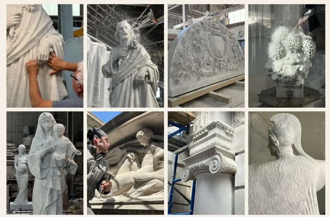 如哈佛毕业生 Micah Springut 通过用AI机器人与雕塑师的合作进行大理石雕刻,将雕塑成本降低了90%,创建公司“Monumental Labs”: