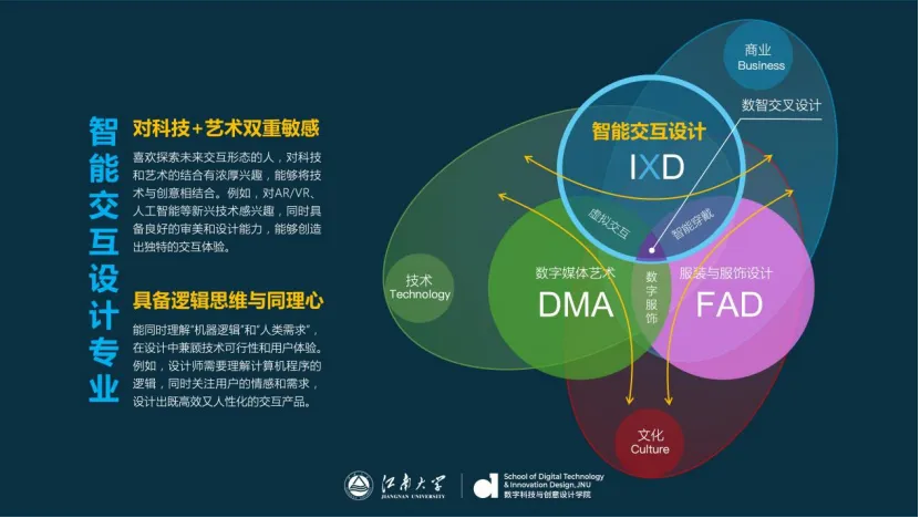 又比如江南大学数字科技与创意设计学院新增的“智能交互设计”专业,同样在培养未来交互形态,如虚拟交互、智能穿戴、数智交叉设计的基础上,要求学生能同时理解“机器逻辑”与“人类需求”,从最本质的用户情感需求出发,用科技去解决问题: