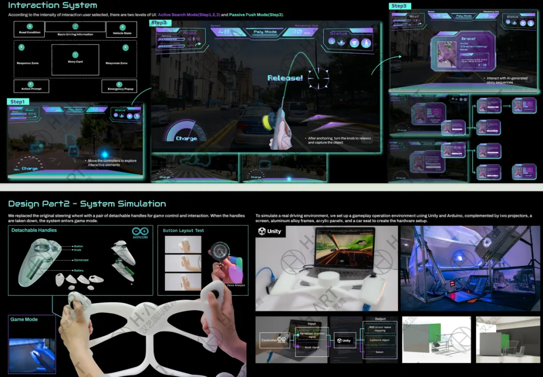 也包括近几年康石石学生做游戏设计,也不再止步于电脑游戏设计,往往会加入交互板块去给用户提供更沉浸式的体验,还会探讨“体感交互”的更多可能,设计从数媒拓展到人机交互也是常有的事: