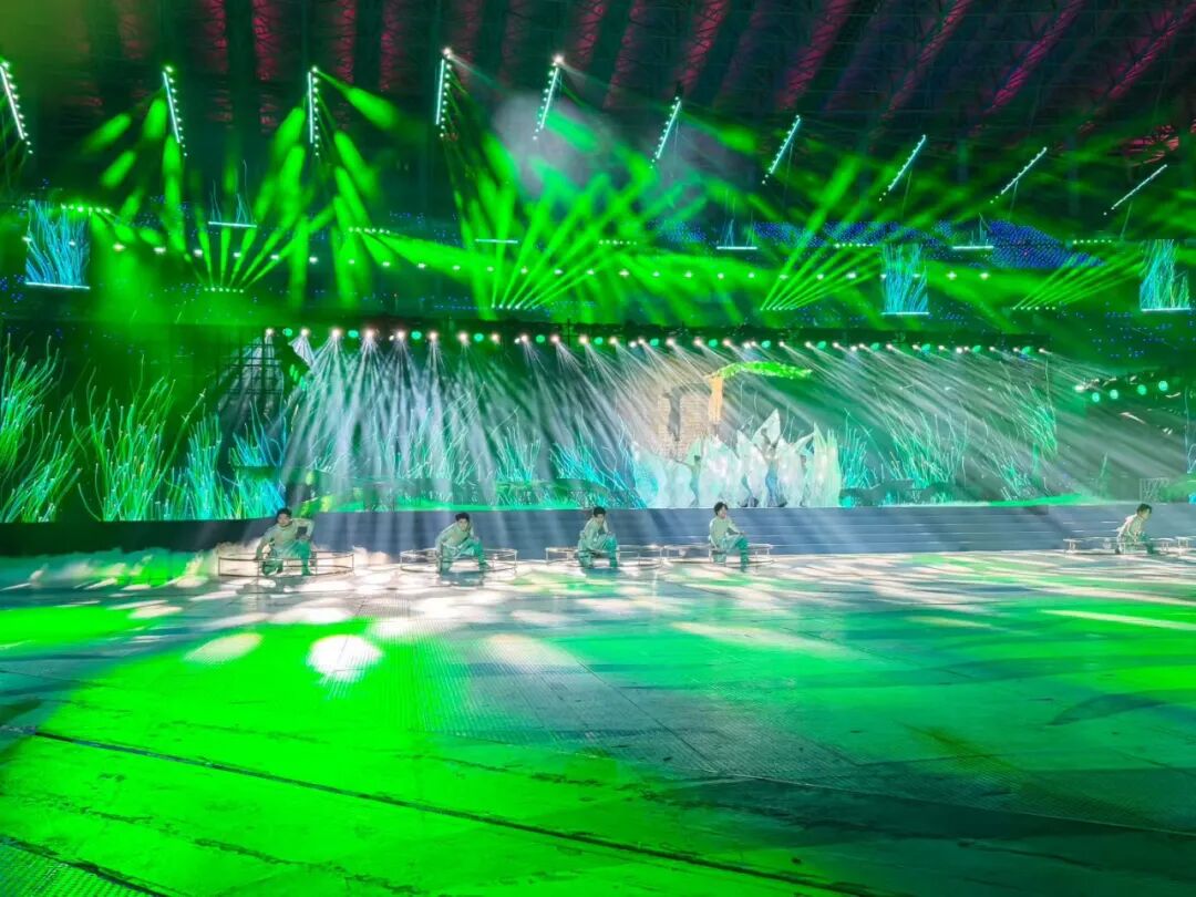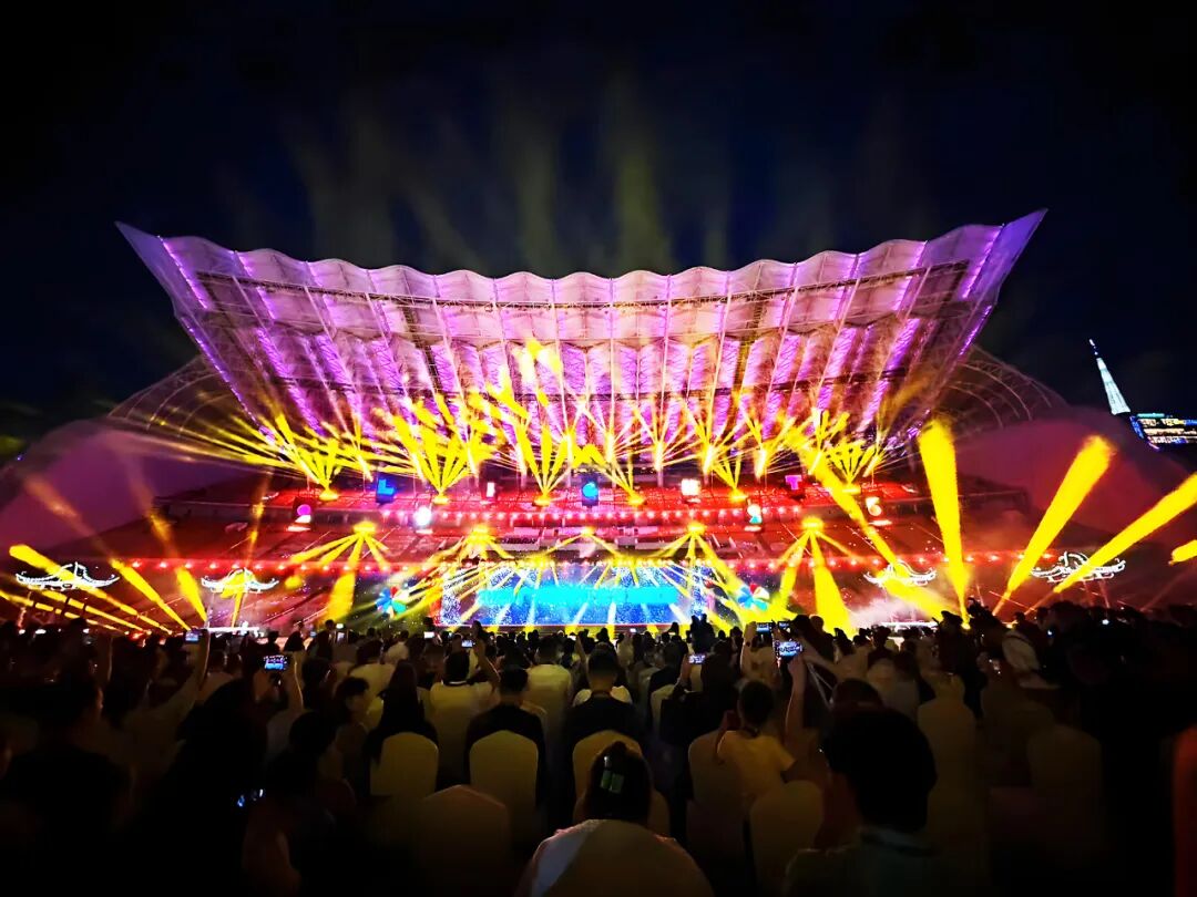同时,海心沙亚运公园主会场内,30场涵盖杂技、舞蹈、魔术、人偶互动的精彩表演轮番亮相,灯光、演出与AIGC技术交织碰撞、迸发奇彩。明道F15全防护四合一摇头电脑灯内置3D立体图案配置和动感效果盘,灵活创造丰富的图案效果;明道F4全防护光束摇头电脑灯以锐利明亮、超远射程的光束矩阵,24棱镜效果,穿透园区夜幕,织就动感光网,打造星空流动的未来科幻感。