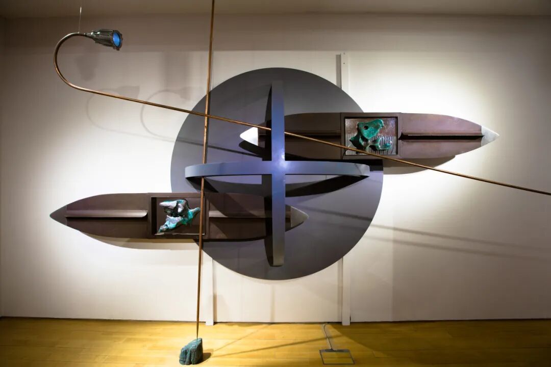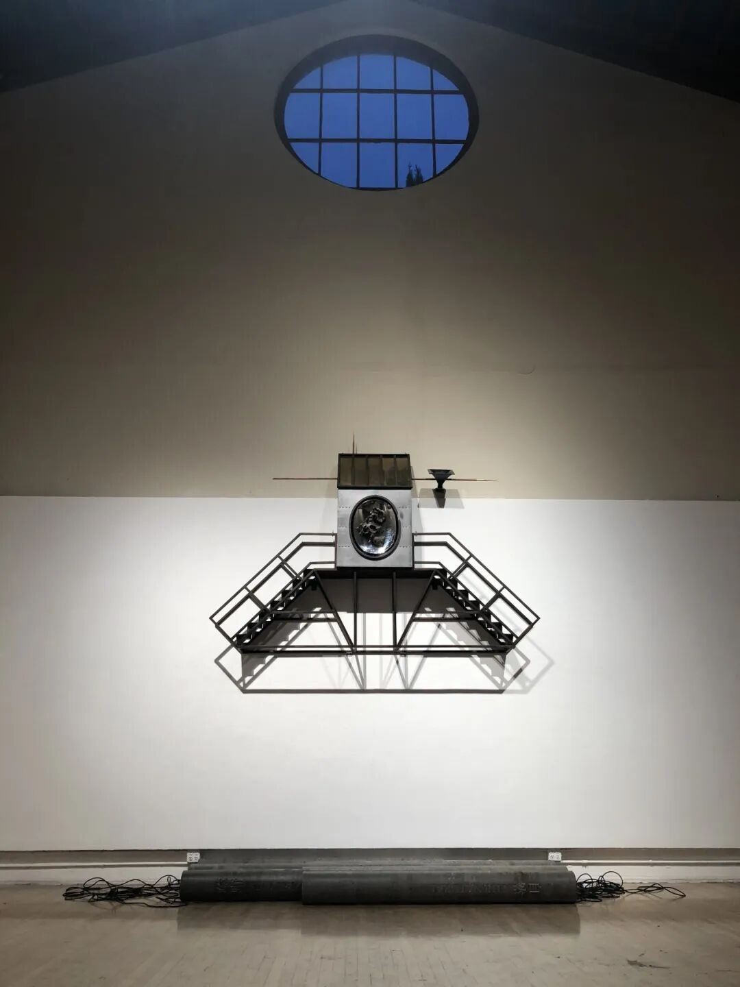 诗的悬界 装置 不锈钢、烤漆、铸铜、铜剑、喇叭、黄铜板、混凝土 2018年