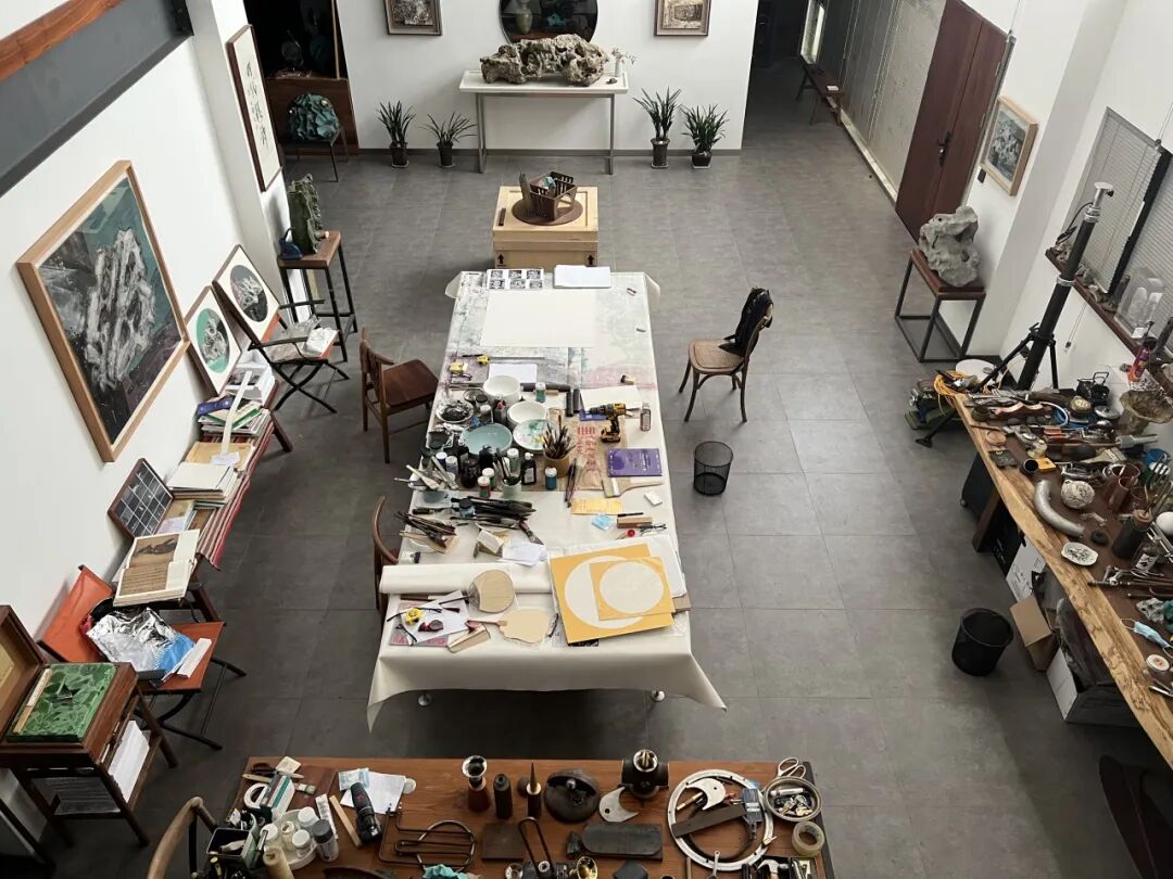 2000年在苏州环秀山庄创作的《观石》《面壁》,更是直接以园林为现场,在作品中尝试引入“借景”与“情境”的概念,用官帽椅、酒坛、太湖石,构建出传统园林与当代艺术对话的独特场域。