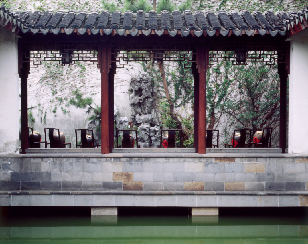 观石 装置 园林、太湖石、中国酒、椅子 2000年
