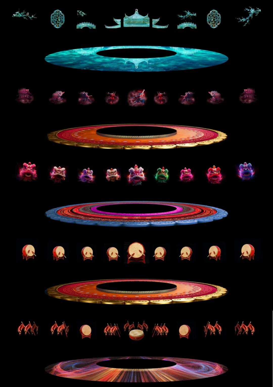 “环”以舞台地面作为核心的呈现载体。外圆与内圆的关系在平面上被描绘出来,为后续的影像铺陈和节目调度提供一个清晰的几何基座。