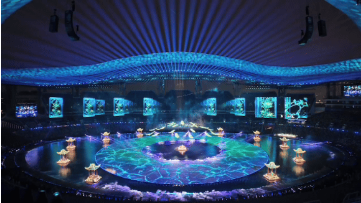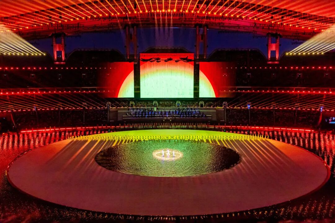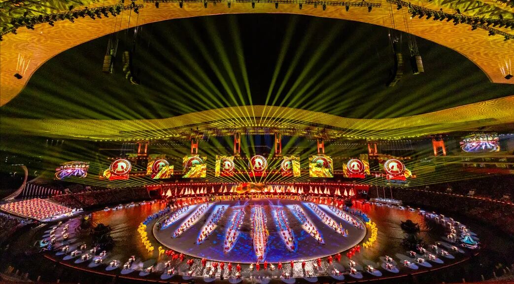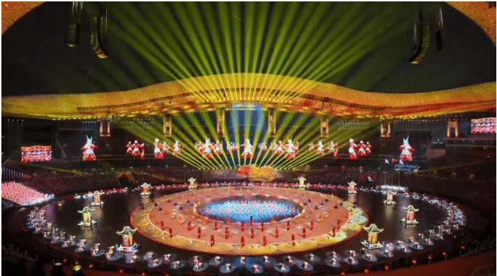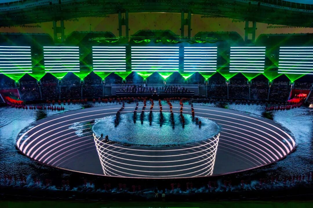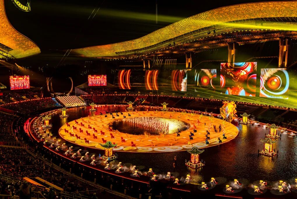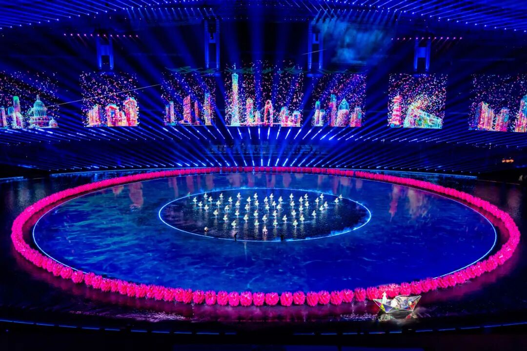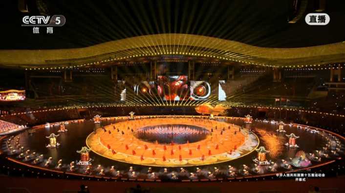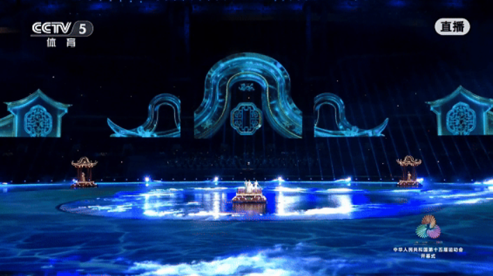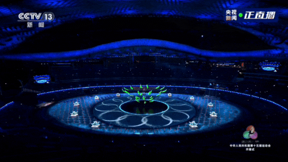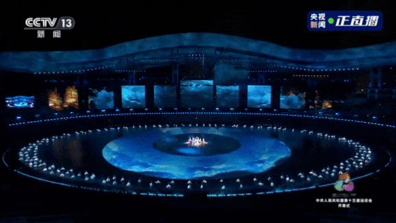 作为首次由粤港澳三地联合承办的全国性体育盛会,开幕式以立面网幕屏与地面环形投影为核心界面,围绕“同根同源”与“同心同缘”为基础概念,运用视听科技手段和艺术语言展现体育和它所呼应的文化、历史与时代精神。