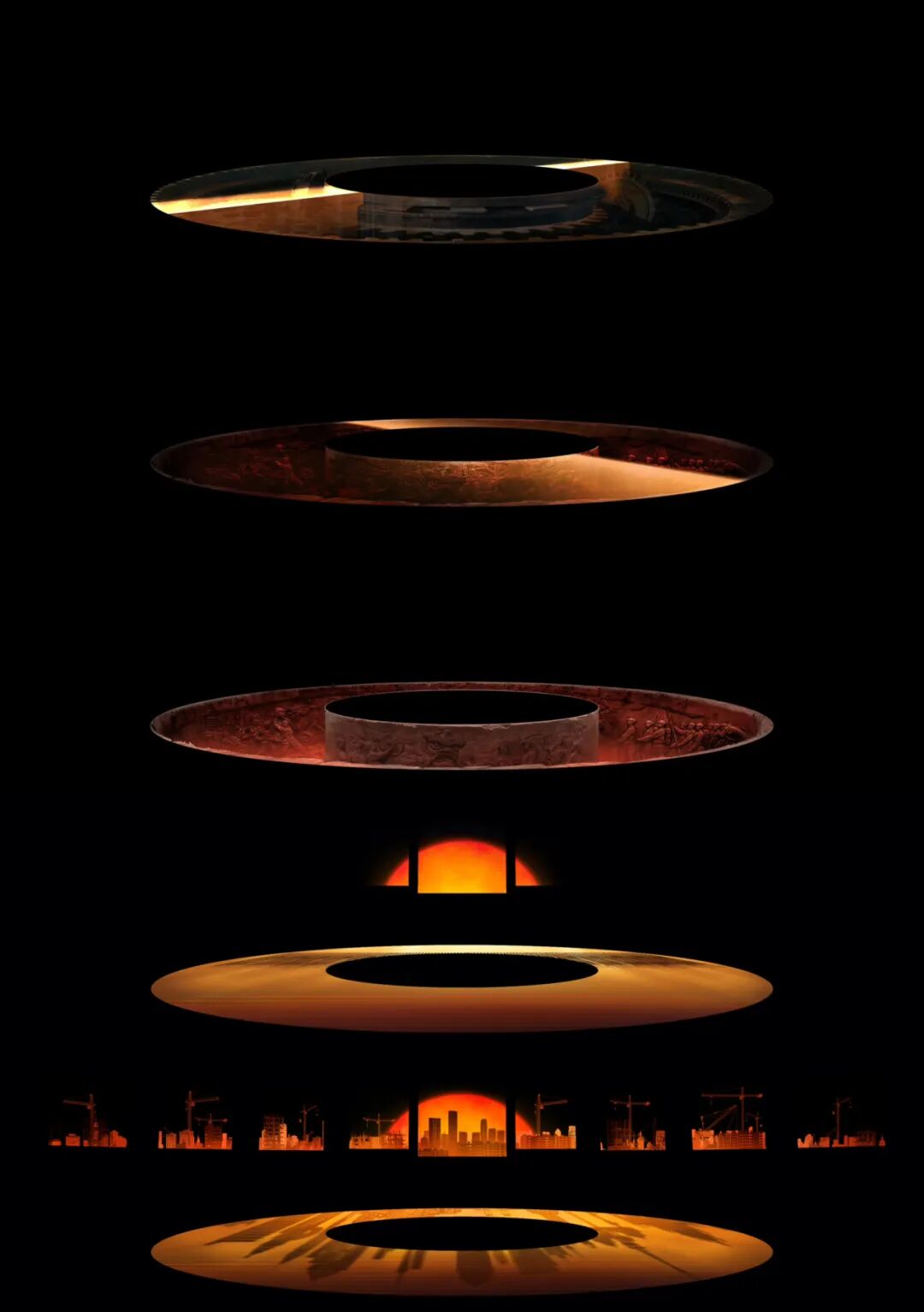 “环”在中华文明的语境中,经常承载着连贯与共存的意味。它使整体造型与东方哲学中的一体本源相互照应,一个无棱角、无高下、循环不息的整体,再现“万物同出一源、由一生多”的观念。