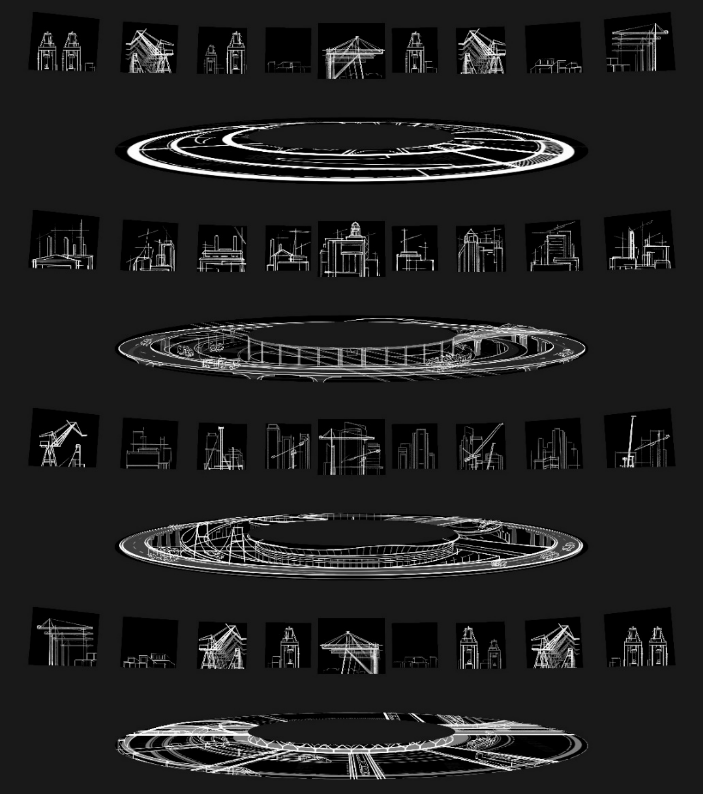 地面环形影像中的雕塑场景亦有人工智能的参与,经由二维深度图像来生成可在三维空间渲染的模型。这种对于生成式人工智能的综合利用,是对AI时代影像设计工作模式的一次积极探索。