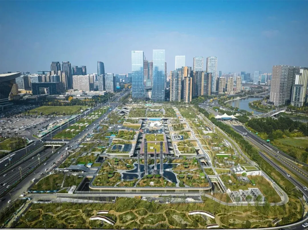 成都SKP更是将“零售与城市生态”的融合做到极致。面对“建筑不得高出地面”的规划限制,Sybarite将挑战转化为创新,构建34.5万平方米的“下沉式零售世界”,汇聚1300余个全球奢侈与生活方式品牌,地面之上,则是190英亩的城市公园,既为市民提供绿色公共空间,也呼应中国“碳中和”与可持续城市发展的愿景。这种“地下商业+地上生态”的模式,让零售不再是孤立的商业体,而是城市生态的重要组成部分。