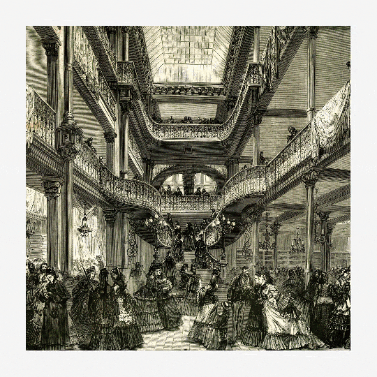 19世纪的乐蓬马歇百货,用“场所感”打破了传统商铺的杂乱与狭窄,布西戈用高耸的铁艺廊台、倾泻自然光的玻璃穹顶,将“场所感”注入零售空间,通过季节陈列、现场娱乐与餐饮服务,让购物成为“值得停留的文化事件”。这是零售第一次跳出“交易属性”,成为城市社交的重要场景,也为“第三空间”的概念埋下伏笔。