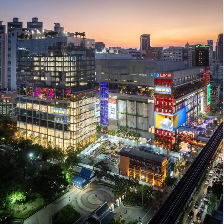 在东南亚,曼谷EmSphere大胆重构了传统的零售建筑布局,它摒弃“一层一品类”的固化思维,将每一层打造成主题鲜明的“体验模块”——原始工业风的建筑语言串联起不同区域,自动扶梯、空中连廊不再是“通道”,而是艺术装置的“载体”。清晨,这里是充满烟火气的零售市集,夜晚,屋顶酒吧与灯光庭院点亮,变身城市社交中心。这种“随时间动态变化”的设计,让EmSphere成为“会呼吸的微缩城市”,印证了“超维零售”的核心——空间的价值,在于满足人们多场景、多时段的需求。