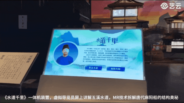 数字人之间还能实现跨场景 “隔空对话”,如王昌龄在 “水道千里” 科普“麻阳船”历史时,屈原数字人可通过投影短暂出现,以 “沧浪之水清兮” 的哲思给予精神慰藉,让文脉传承更具连贯性。