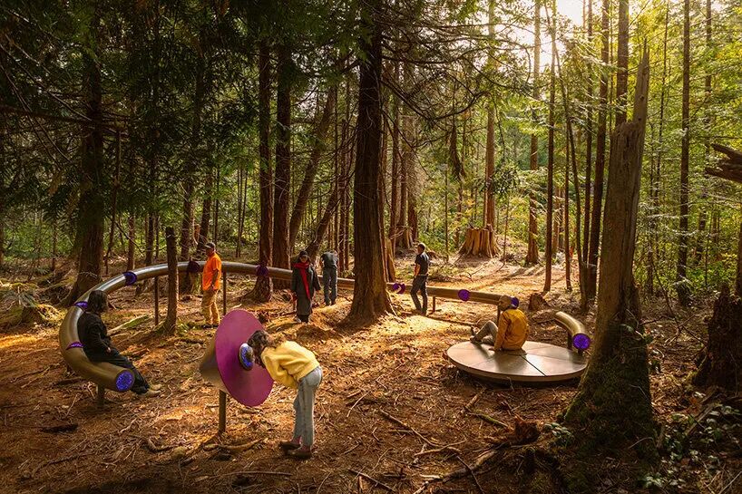 在加拿大最稀有、最脆弱的生态系统——霍恩比岛沿海花旗松林深处,艺术设计工作室 Daily tous les jours 安装了名为《Forest Mixer》的艺术装置。该装置将人声转化为不断演变的和声、振动,最终形成一种类似声波覆盖物的效果。