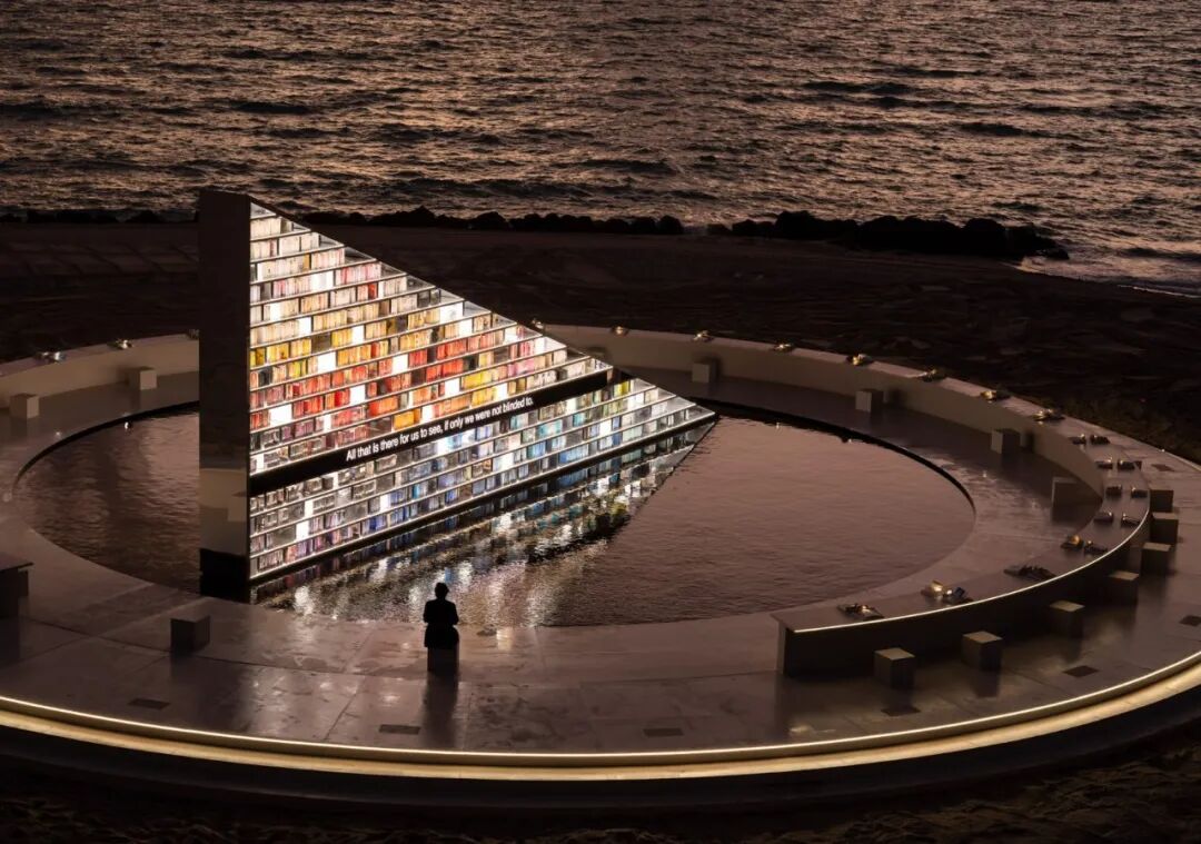 该装置占地约2,478平方米,作为公共空间内的城市室内空间。夜间时段,白色幕布表面作为投影屏幕,展示源自《国家恶习收藏》的文本证言。这些投影与柔和的灯光及环境音效相结合,将广场转变为露天展览空间,模糊了公共空间与个人反思的界限。