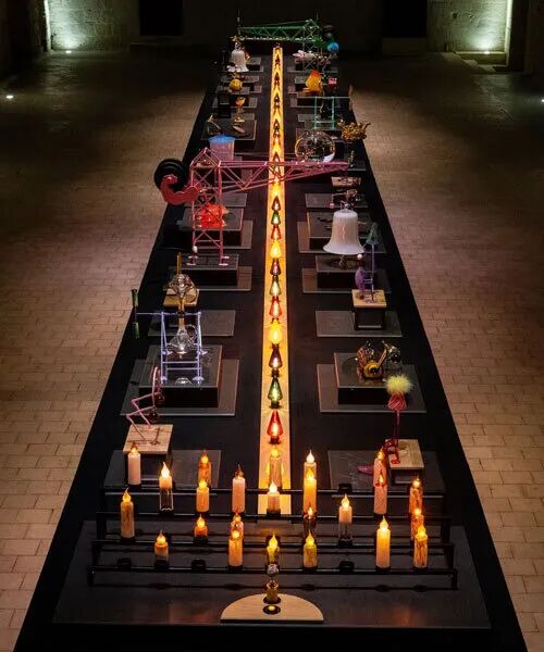 《圣诞机械》(La Mécanique de Noël)是由法国 Agence GG 事务所的 Hellène Gaulier 和 Gwénolé Gasnier 为丰特弗罗修道院餐厅设计的20米长的互动装置。该项目被构思成一张大型公共餐桌,通过一系列互动装置、吹制玻璃元件、灯光、声音和气味,探索节日聚会的感官和机械维度。