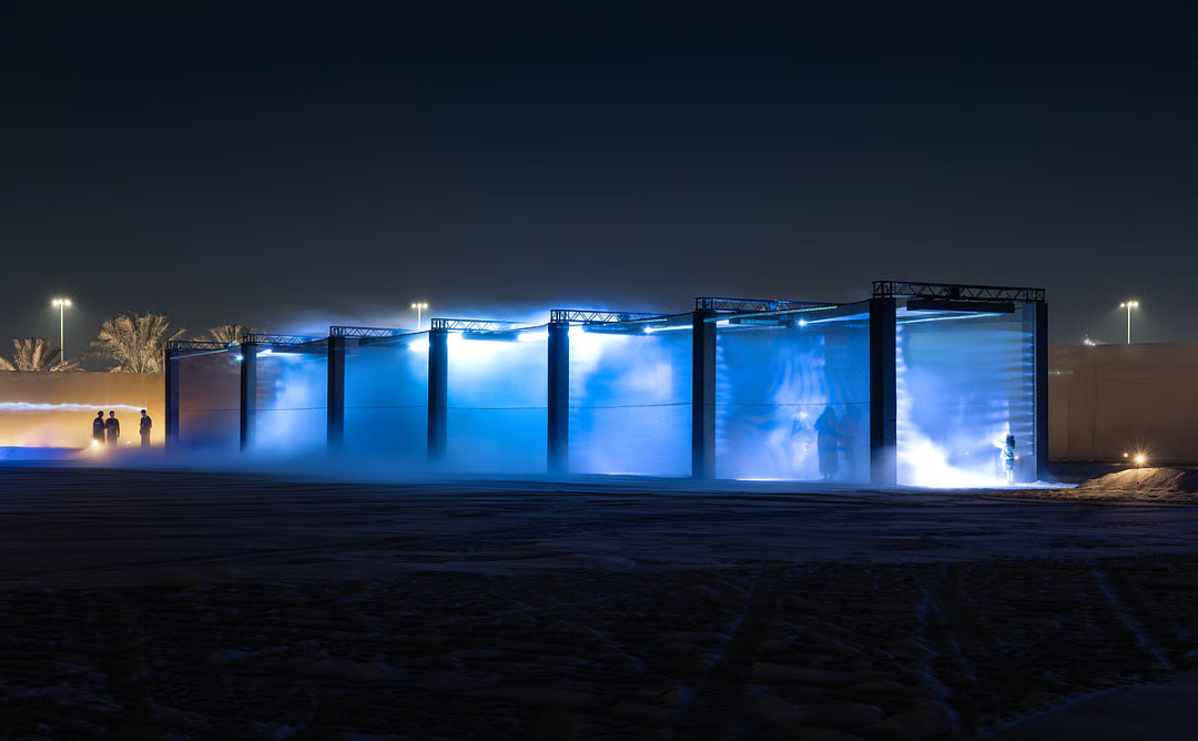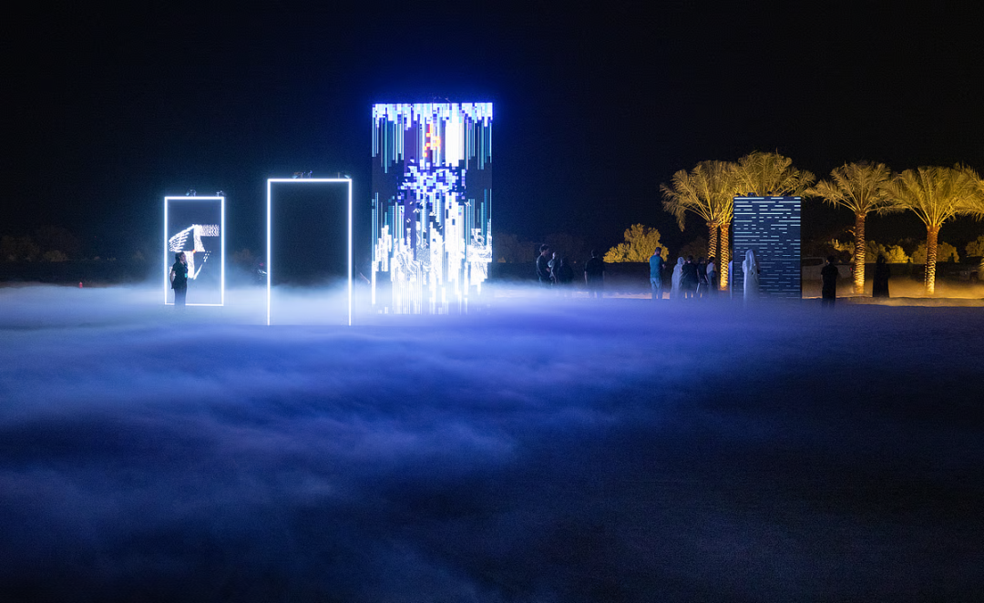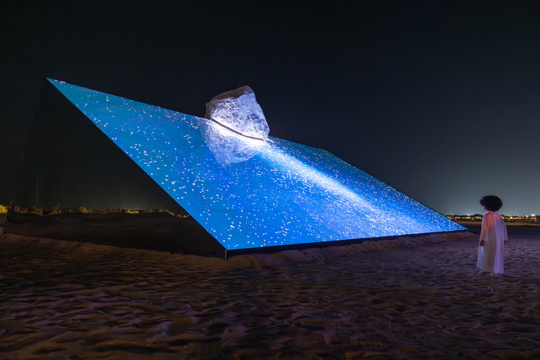 阿联酋艺术家 Shaikha Al Mazrou 在阿布扎比展出了作品《Contingent Object》,这是一场在红树林和潮汐空气塑造的沿海景观中展开的公共灯光艺术展。