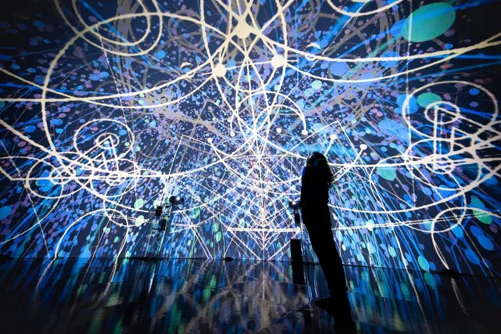 场馆以“Bio(生命)+Vortex(涡流)”为核心概念,构建沉浸式“生命涡旋宇宙”,观众通过身体互动参与艺术创作,感受生命流动与存在的无界性,延续 TeamLab“消除艺术与观者边界”的哲学。
