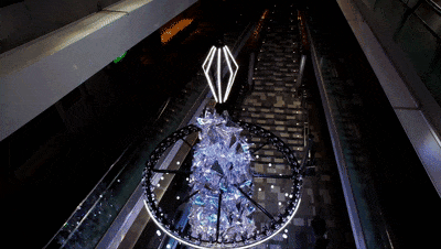 圣诞树主体在平时以纯白一色的灯光呈现, 20分钟会出现一次特别演出,灯光将转为缤纷色彩,“光之环”与音乐同步,如同开始舞动般带来艺术性的表演,音乐由声音设计师黑泷节也创作。